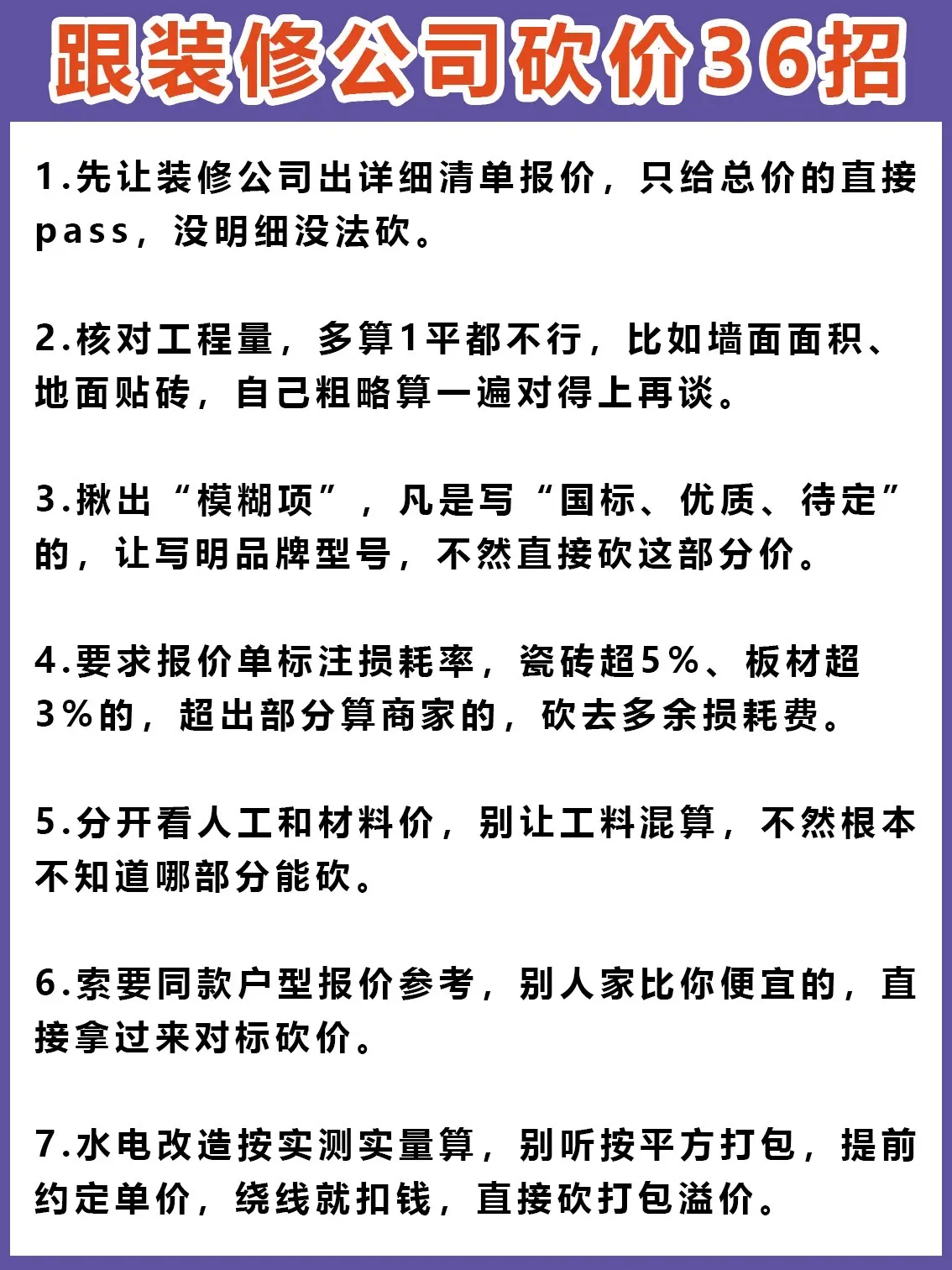 跟装修公司砍价的36招!装修公司报完价之后,你们倒是要学会砍价啊!这是...