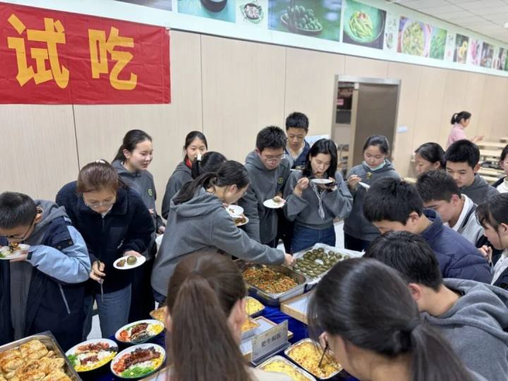 清明假期前的最后一天,4月3日下午,杭州中学举行了一月一度的新品试吃会,60多位学生率先品尝了焗饭、三丝炒面、蒲烧鳗鱼饭、芝士肥牛卷、酥排骨锅巴牛仔粒、蒜香口蘑鸡、蜜汁鸭腿、台式脆皮鸡、热拌牛肚、豆花牛柳等12个食堂新菜品,并给这些菜进行投票。