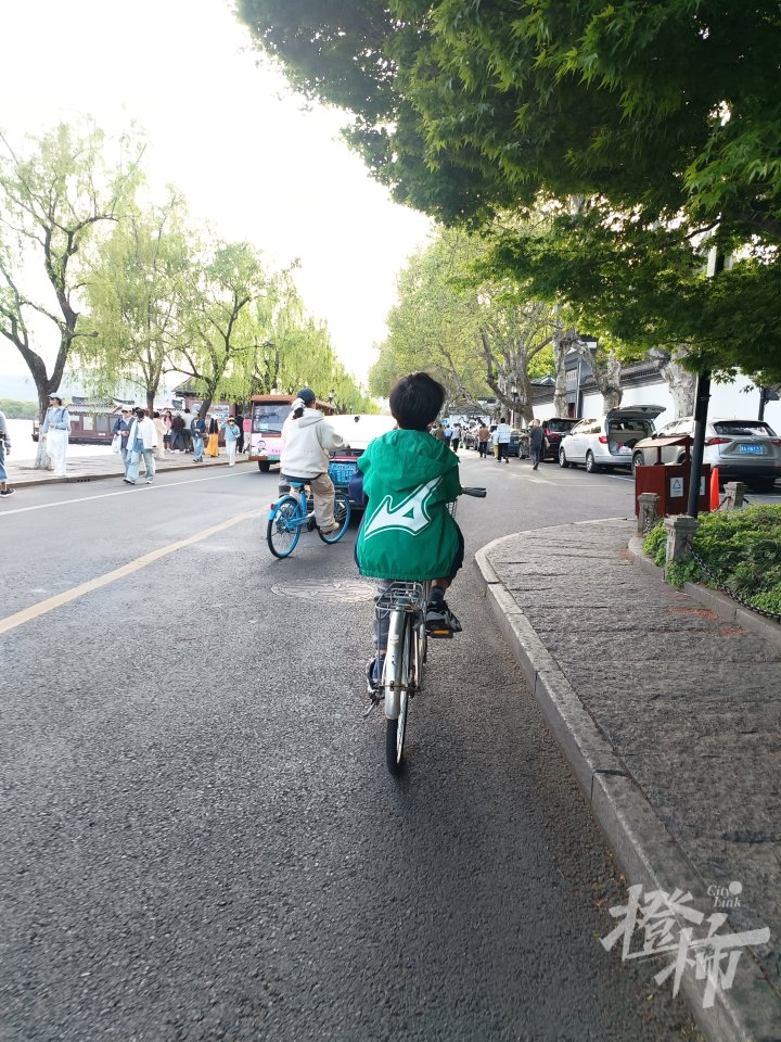 孤山路上小康同学骑着妈妈的自行车