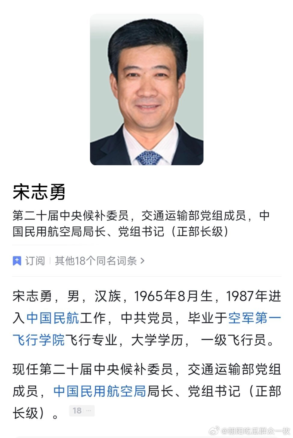 中国民用航空局官网更新显示,交通运输部党组成员,中国民用航空局局长、党组书记宋志