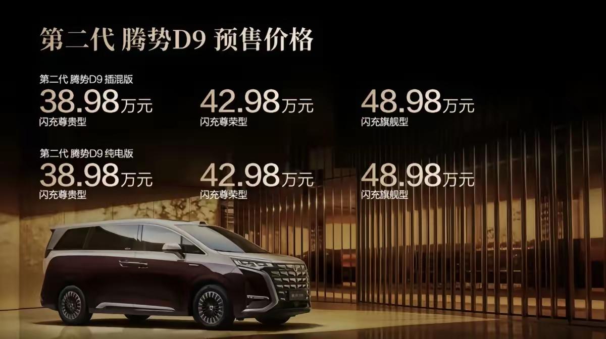 从腾势d9n9目前的定价来看,基本就是走高产品价值的高端路线了。 二代刀片电池+400公里纯电续航+闪充2.0,这是把插混纯电玩出了新高度了,既然贱卖都一直不温不火,那就索性换一种打法,想要为高技术买单,那就准备好元子。 硬件素质直接拉满,高端用户肯定有懂行的,走不走量还不好说,极氪9x能卖的这么好,也是挺让人匪夷所思的。所以腾势想靠靠n8l苟活续命实际上作用有限,还不如给大唐留点发育空间,自己做好高净值的市场得了。