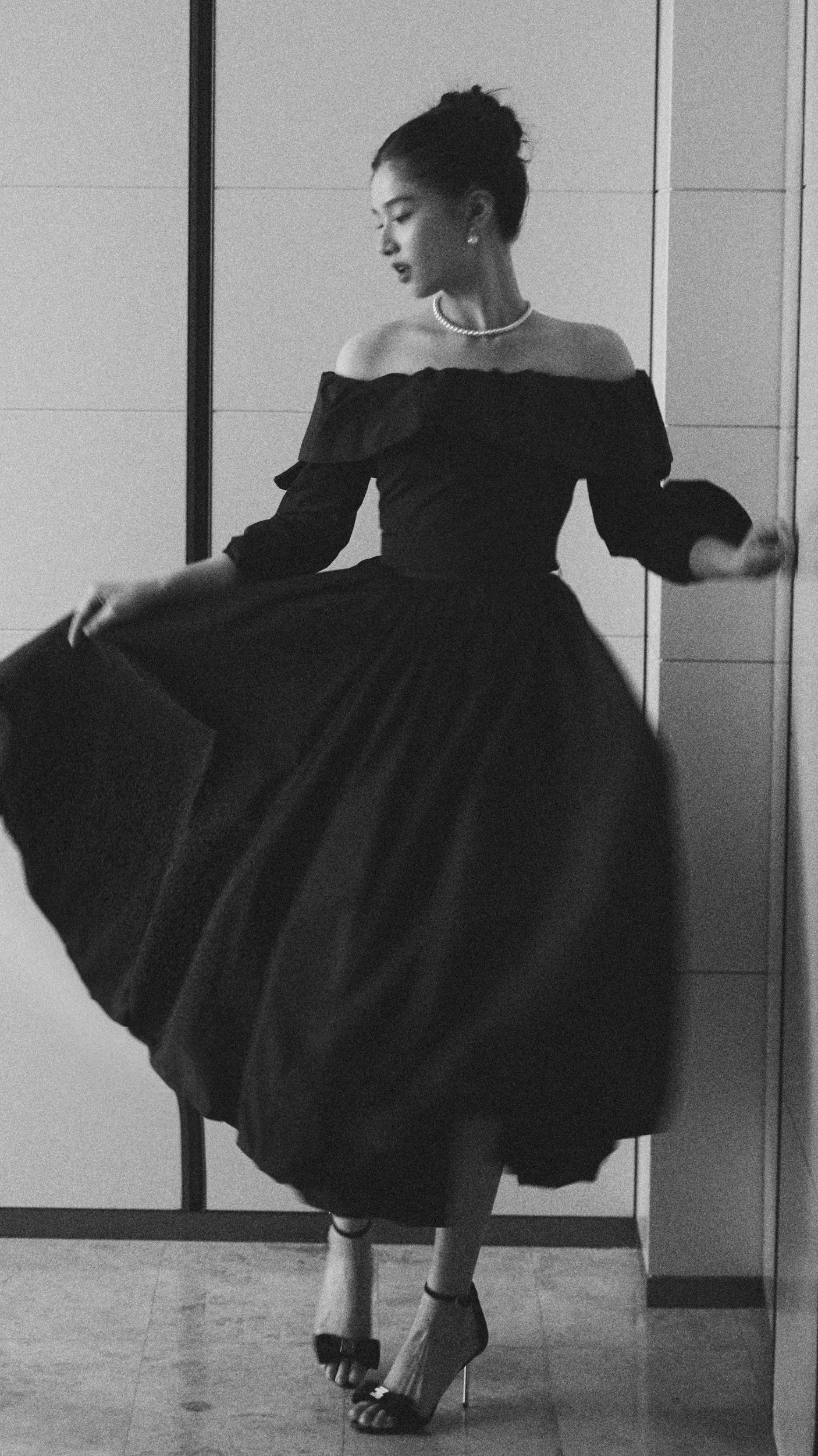 张婧仪,黑色长裙,柔美优雅风姿。张婧仪