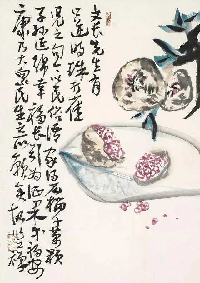 李苦禅继承了中国画的传统,吸取石涛、八大山人、扬州画派、吴昌硕、齐白石等人的技法