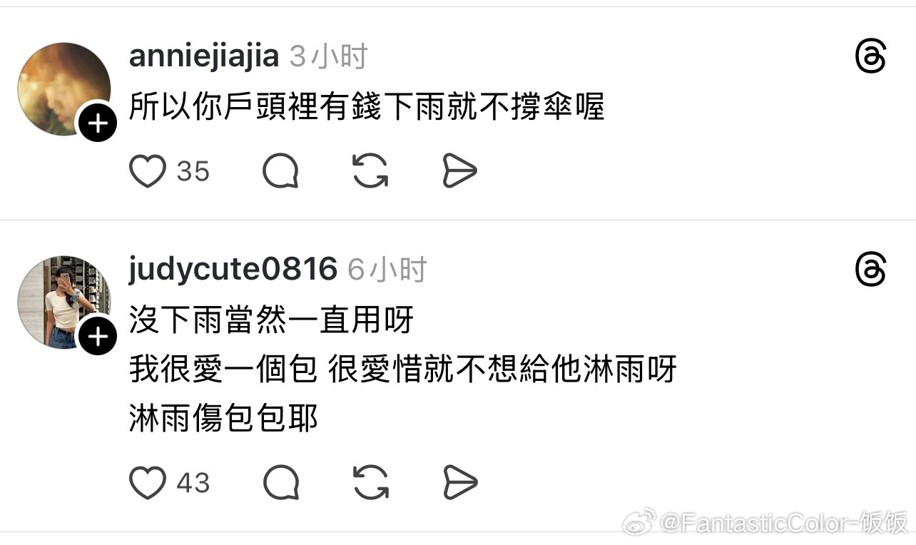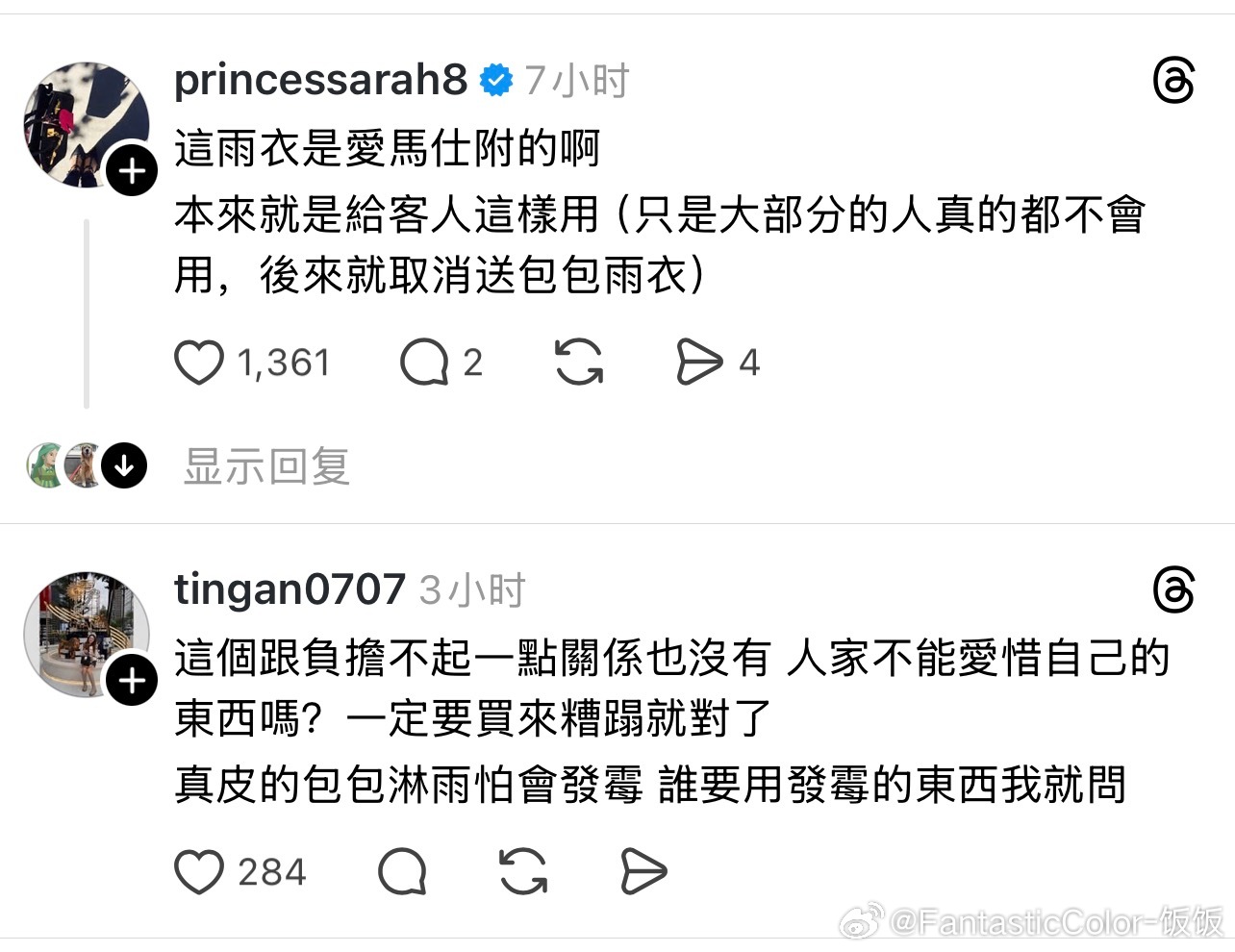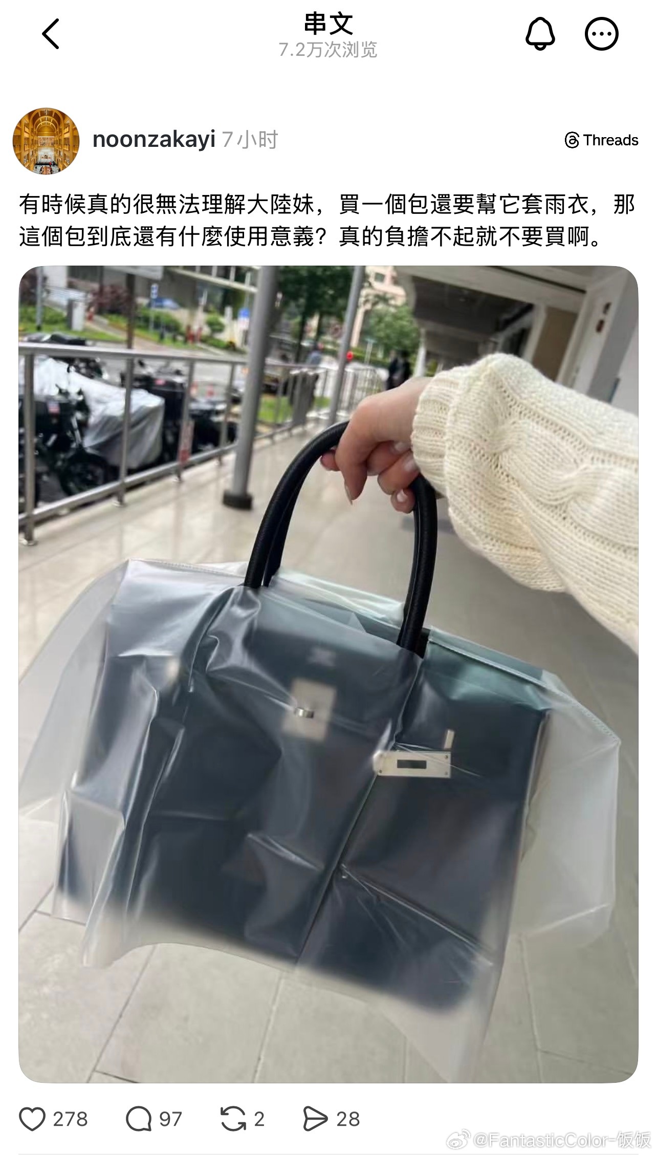 台湾人发帖吐槽大陆人买包还要给包配雨衣,负担不起就不要买…