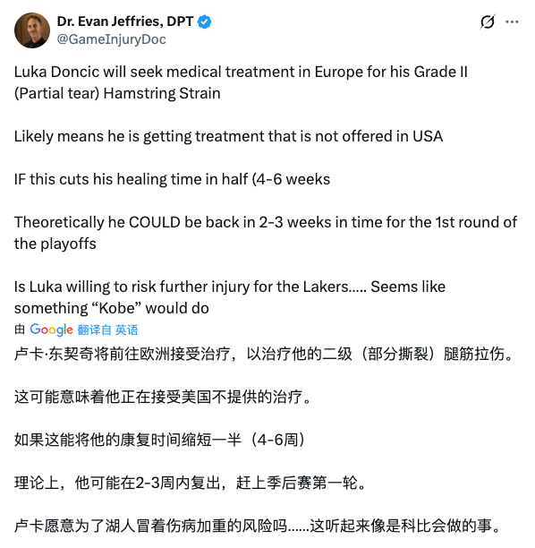 东契奇回马德里接受干细胞移植这个事,多少有点赌自己生涯的意思。