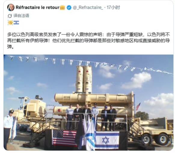 以色列军队的防空导弹已经严重短缺,近期以色列发射的拦截弹残骸上的标识显示,以军已经在使用2026年刚刚生产的“大卫弹弓”拦截弹了。