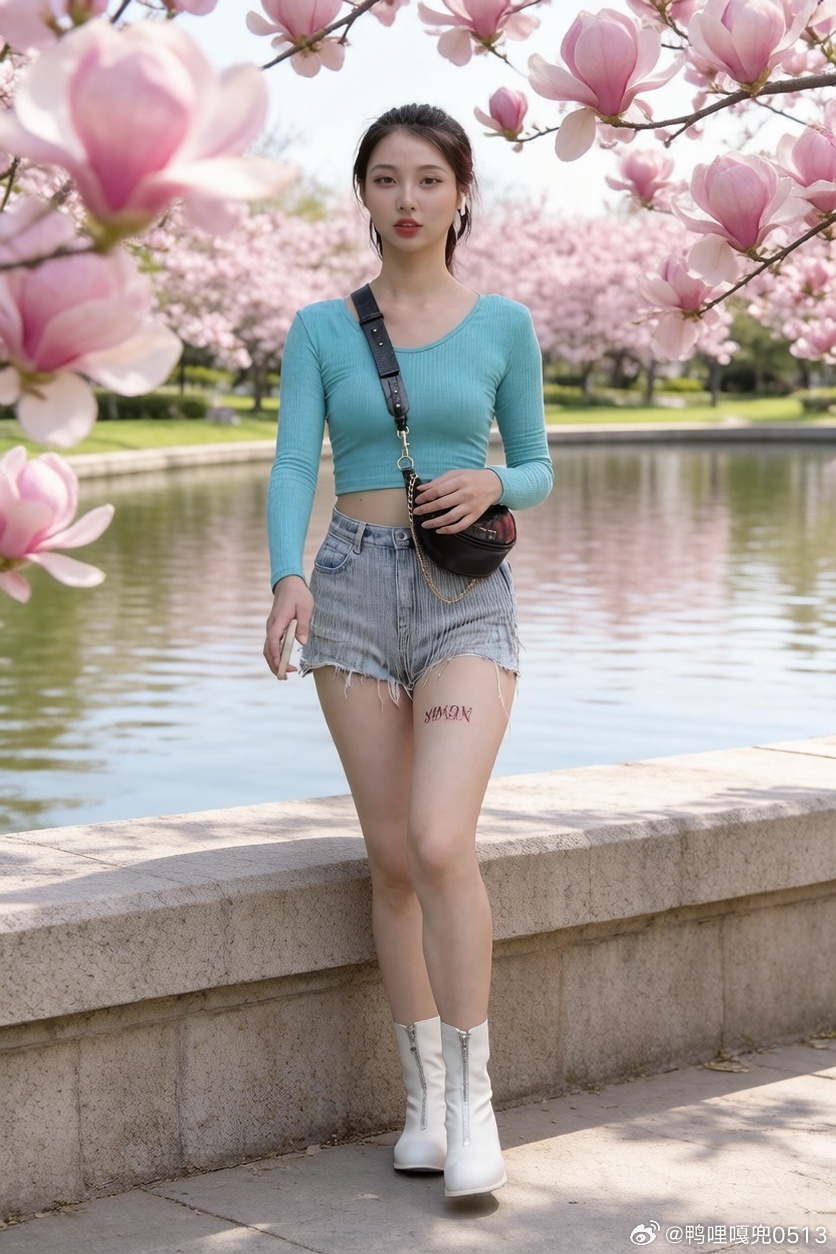 牛仔短裙搭配蓝色上衣,确实很耐看。时尚由她来定义。