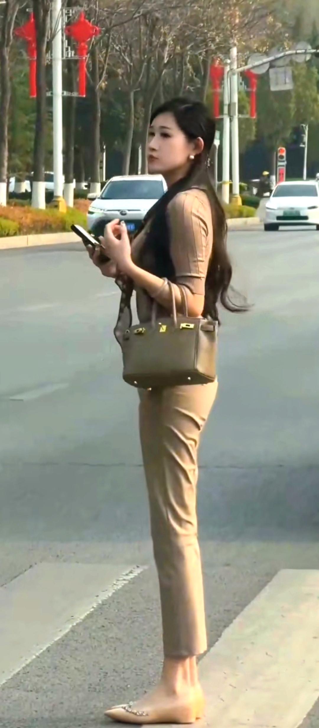 优雅街拍,米色穿搭,时尚与街头风完美结合