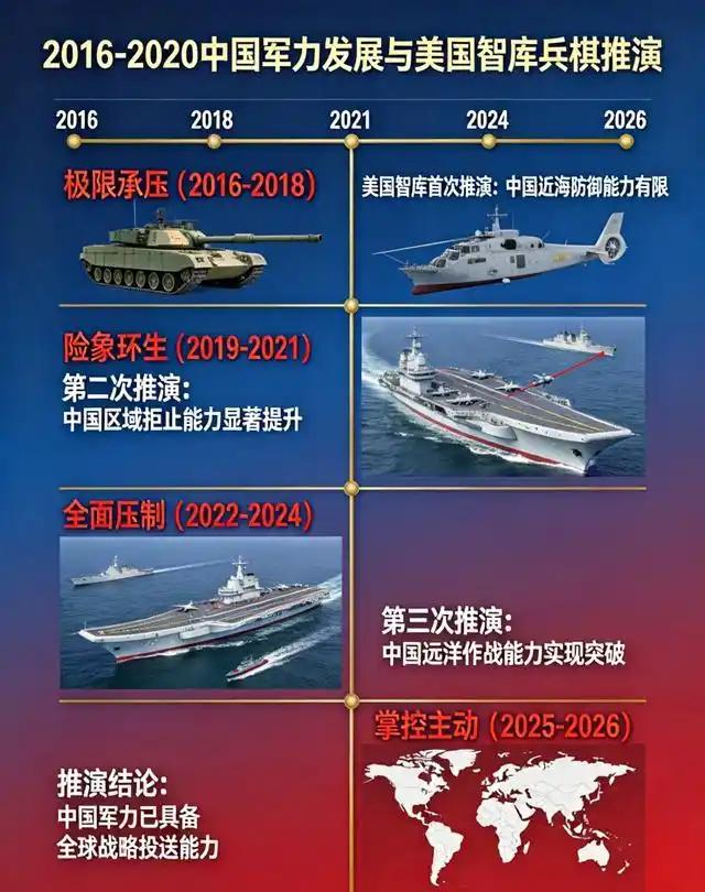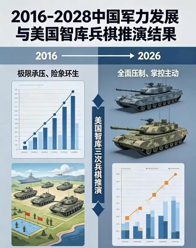 我国军力从2016到2026年有哪些增长?为何十年前美国智库推演,中国海军几乎全军覆没,十年后竟能3小时瘫痪美军三支航母编队?这十年中国军力到底猛增了多少,又新增了哪些硬核国产大杀器?为何美国三家顶级智库,前后三次推演天差地别?