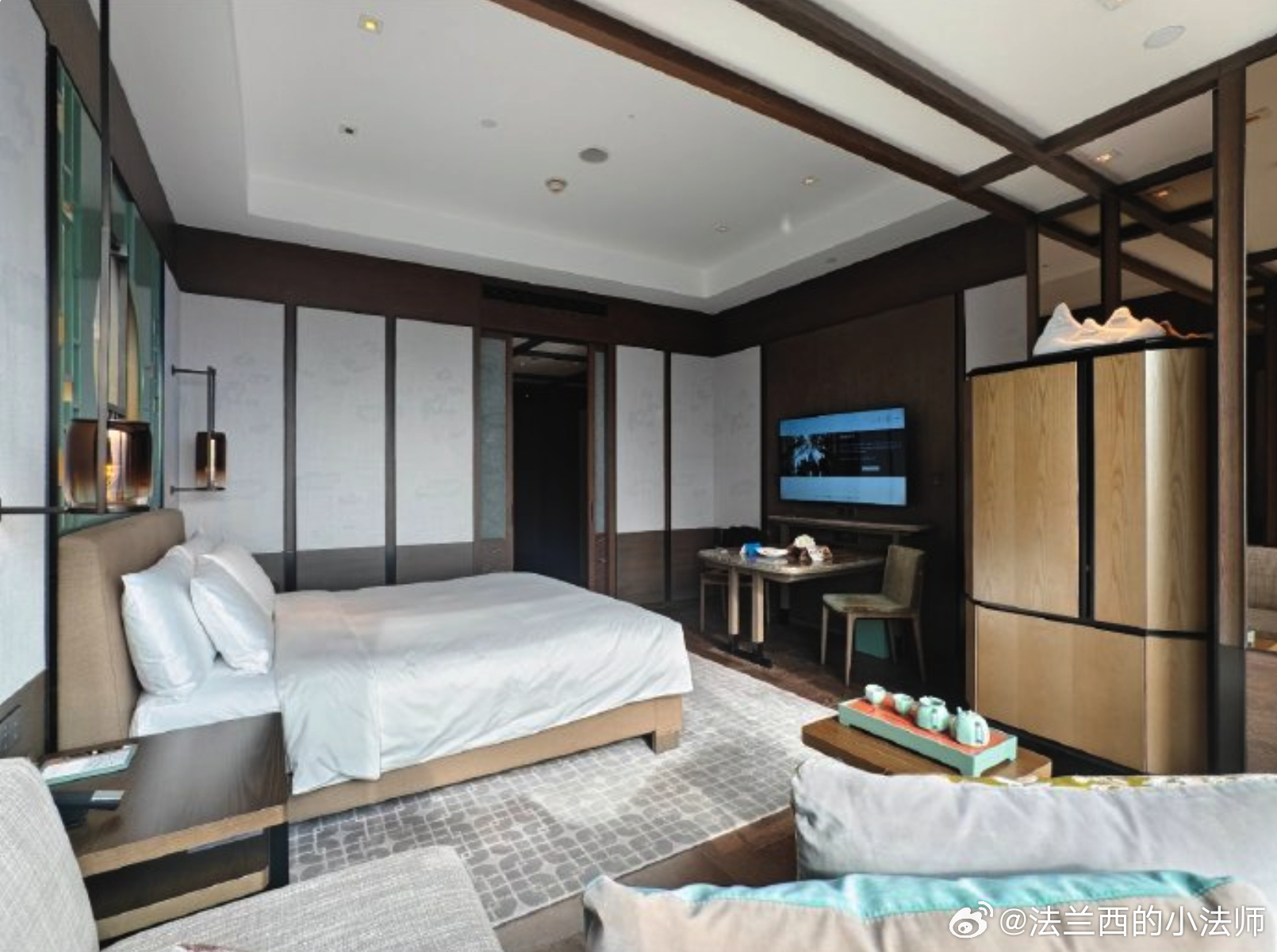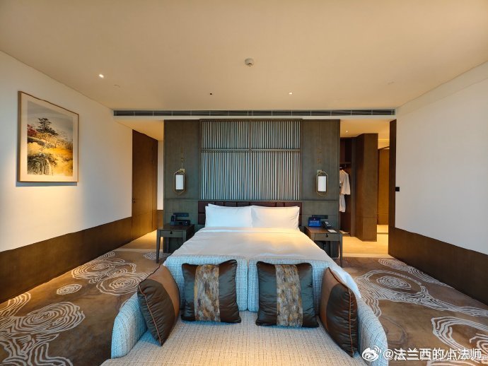 再比如深圳的柏悦酒店,可以说是城市C位 了!也是中式禅意融合现代设计的结合,一开门你感觉进了个百京四合院,但打开推拉门忽然发现,原来在云端,俯瞰CBD简直不要太爽!