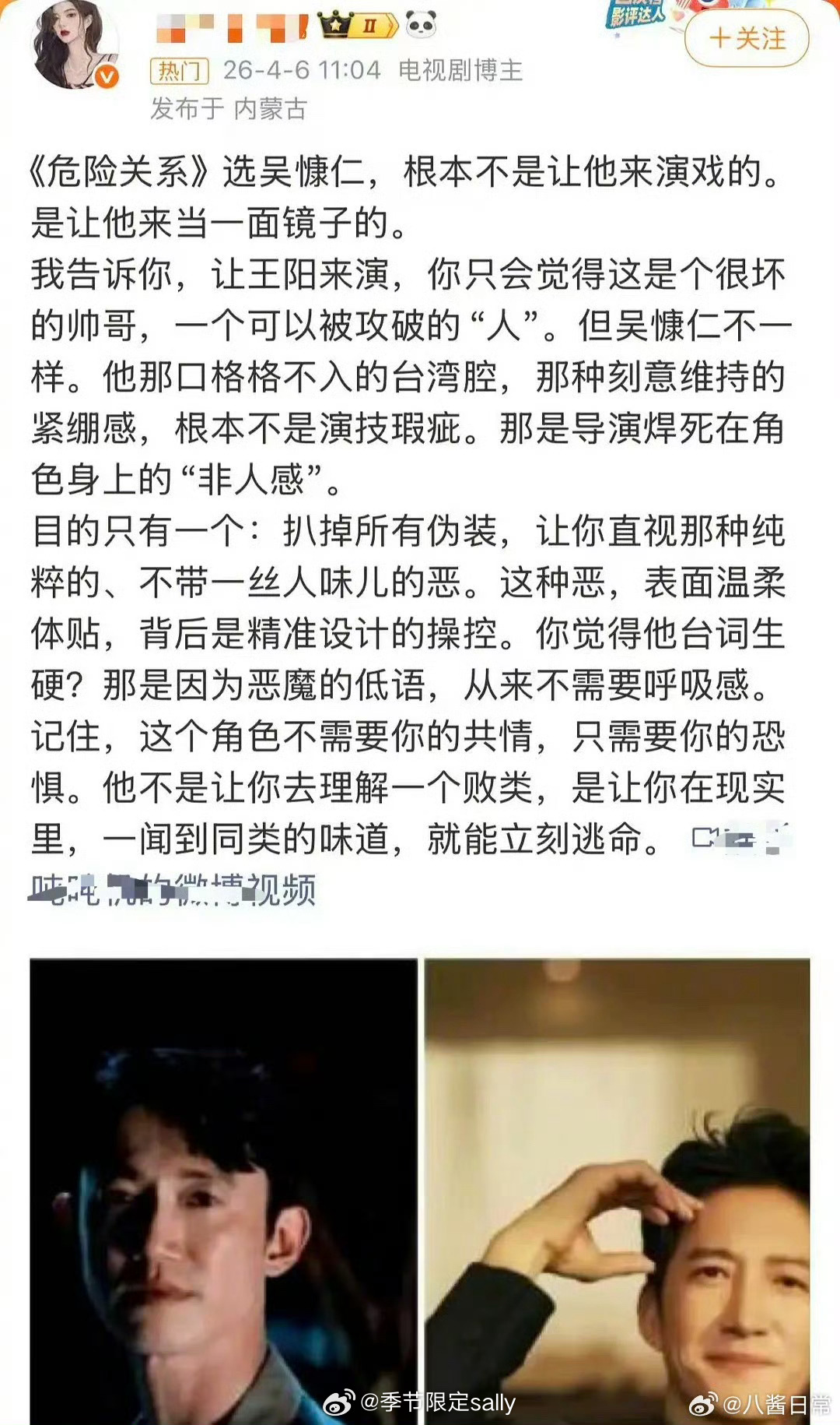 《危险关系》金马影帝吴慷仁说,被孙俪狠狠上了一课!吴慷仁和孙俪新剧大家都