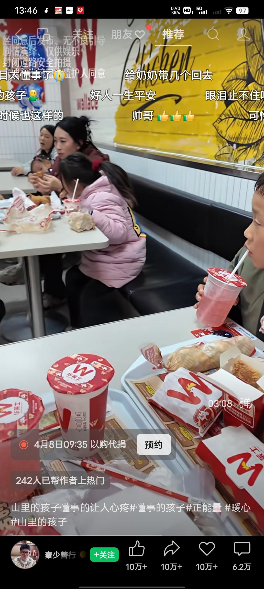 穷人家的孩子早当家一点都不假,穷人家的孩子就是埋在土里的一块璞玉,发光只是早晚的事! “哥哥可以搭我一下吗?” 你不怕我给你卖了呀? “其实老师说不让我坐陌生人的车,我就是太累了,你可以搭我一下吗?哥哥” 没事的,我是跟你开玩笑的,我就是想搭上你的,你这是怎么回事啊?你背的是什么呀?你要去哪里? “我背的是土豆,我要去城里卖了,给奶奶买药” 你爸爸妈妈呢?你家里还有什么人? “爸爸死了,听奶奶说他伤了一条腿一条坏了,感染了另一条腿另一条腿也坏了就死了,妈妈过了两天就跑了,现在只剩下我跟奶奶” 你想你妈妈吗?你妈妈有没有联系过你? “不想他,因为她太坏了,她都不要我了,我觉得我最对不起的就是弟弟,因为在2024年的时候弟弟出去玩淹死了,如果弟弟还在的话,就能陪我一起去卖土豆了” 听大哥一句话,下次来城里的时候把衣服洗干净,那样你会更帅哦。 “我只有这一身衣服,没办法洗” 那咱们去给奶奶买完药,然后去买衣服,买完衣服我再请你吃顿饭好不好?哥哥带你去吃汉堡炸鸡腿,你吃过吗? “哥哥,你已经帮了我这么多了,不能让你再花钱了,我听说炸鸡汉堡挺贵的,这钱就给你吧我不要了,在学校里,他们总在炫耀汉堡炸鸡腿有多香有多好吃。下一次上学,我就跟他们说我已经吃过炸鸡汉堡了。” 炸鸡店里有好多小朋友,有他们的爸爸妈妈陪着,那个十几岁的孩子竟然是第一次吃汉堡炸鸡,“原来这就是汉堡好香啊!哥哥,我吃饱了,我可以剩下两个给我奶奶带回去吗?我奶奶一辈子都没有吃过这种汉堡炸鸡”男孩的嘴里吃着汉堡,眼睛却在看着邻桌上有父母陪着的同龄的孩子,他突然说“他们有爸妈陪着真的好幸福” 是啊,原以为他看的只是热闹,原来他看的是他从未拥有过的童年!他说他有个梦想,长大后要吃遍所有的炸鸡汉堡,还有一个更伟大的梦想就是长大了要去当兵,因为当兵可以去保护别人!