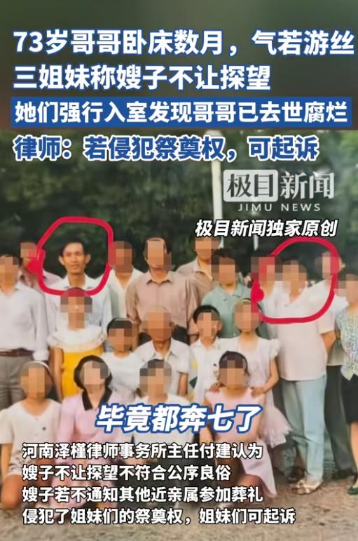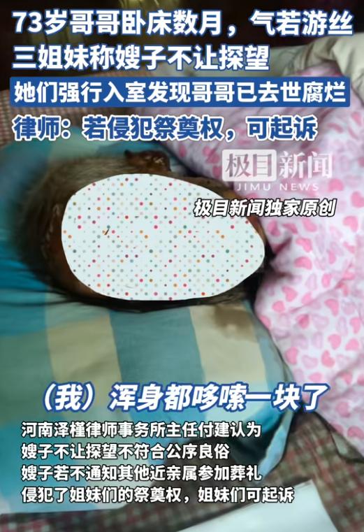 2025年11月天津,一女子给哥哥打电话时,感觉哥哥已经说话气若游丝,但是嫂子却始终不让她上门探望,于是姐妹3人只好强行入室,却发现哥哥已经去世多日,遗体都已经开始腐烂,网友:这是什么操作?