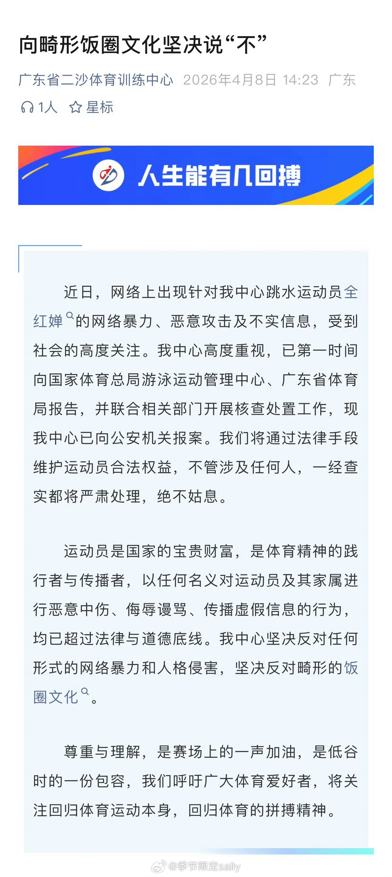 终于发声了,卧槽国家游泳中心针对全红婵遭受的网络暴力发表声明,已向警方报案!