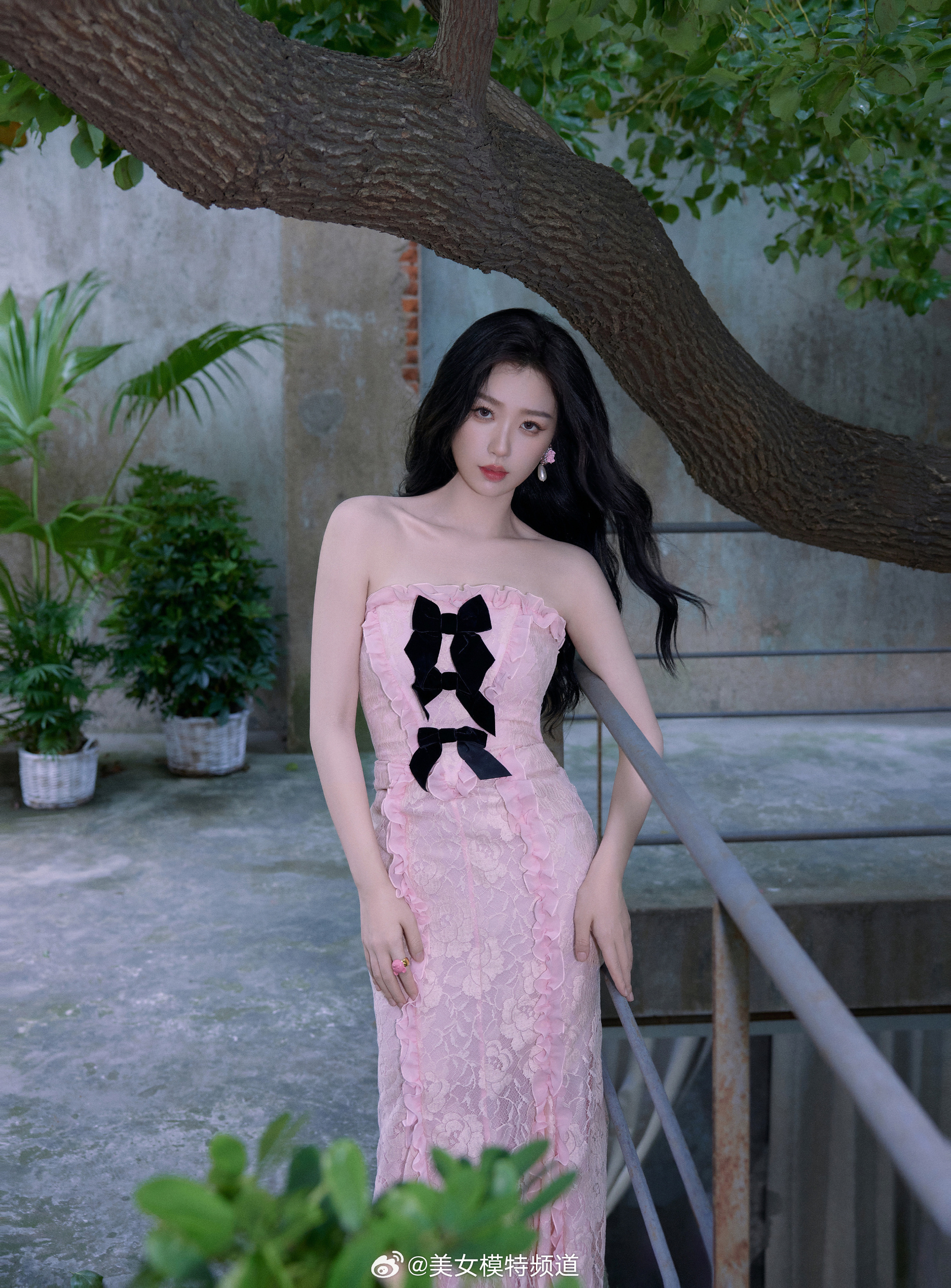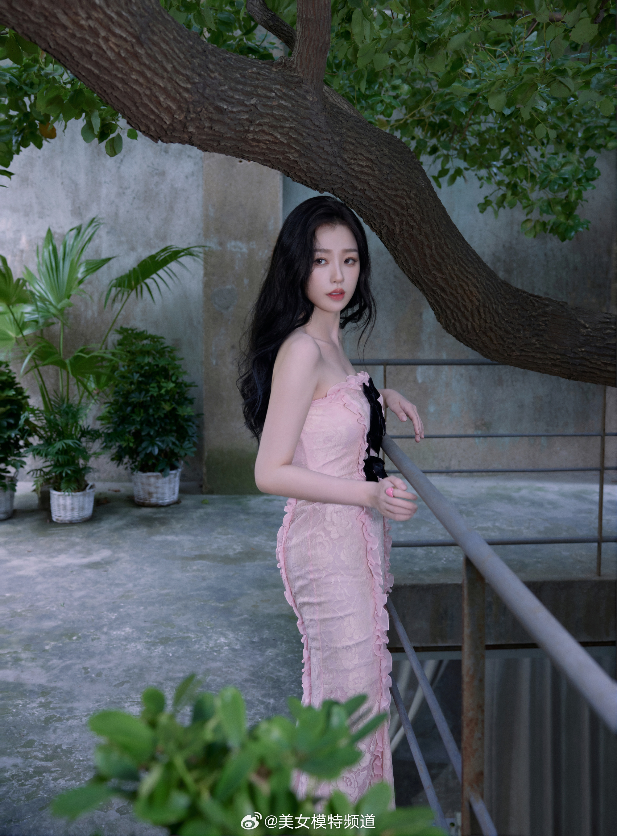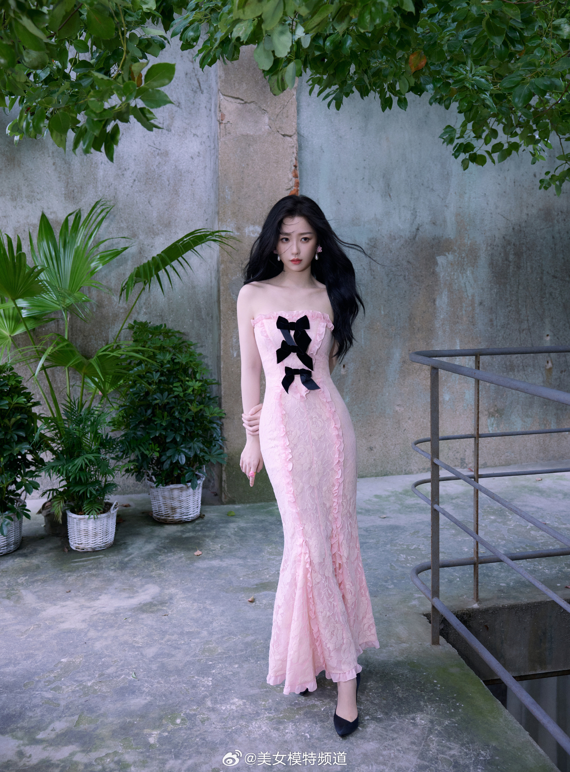一袭长裙的御姐型美女,那气场简直绝了。就说穿搭,黑色丝绒包臀紧身长裙配黑色缎面吊