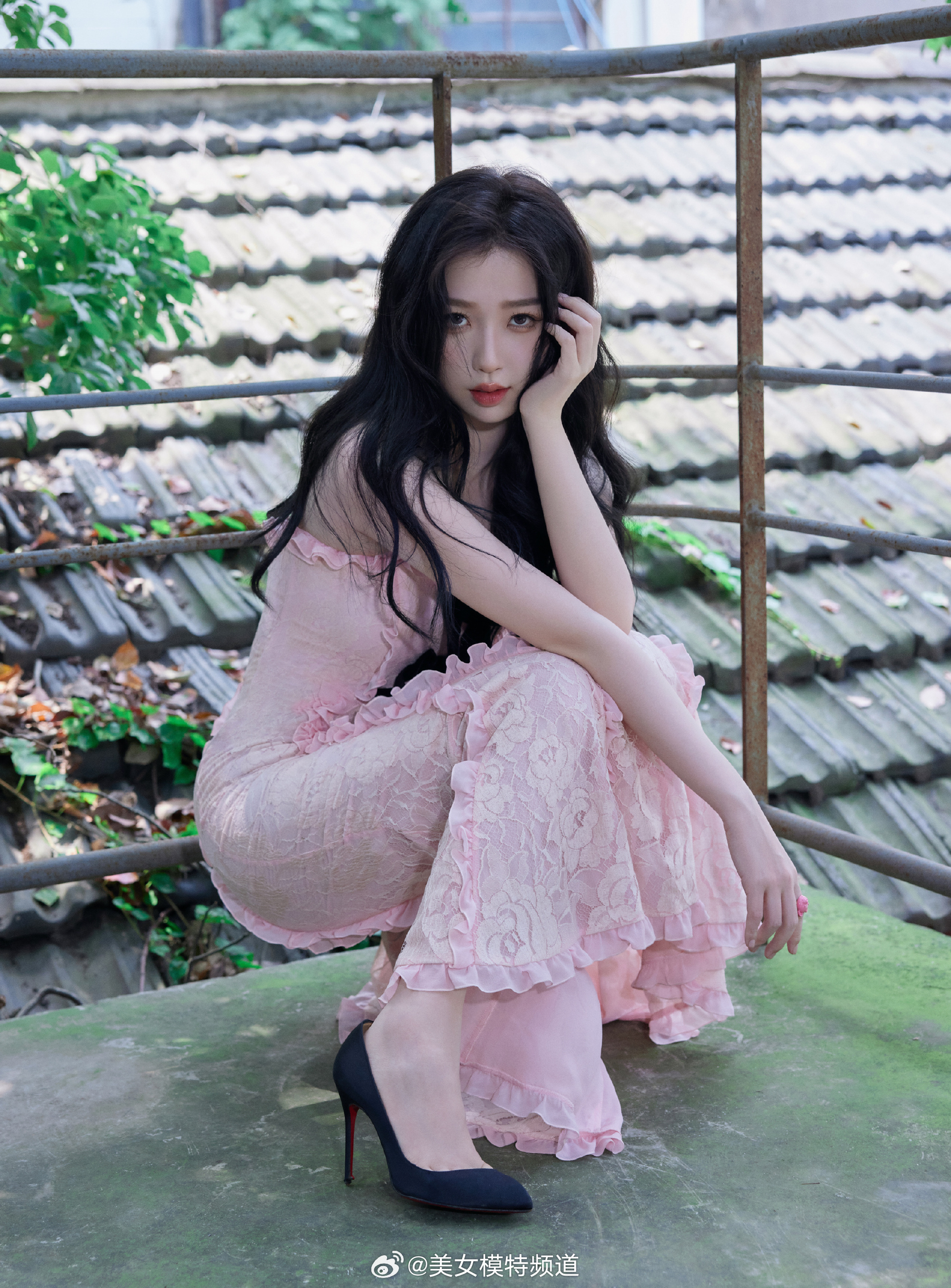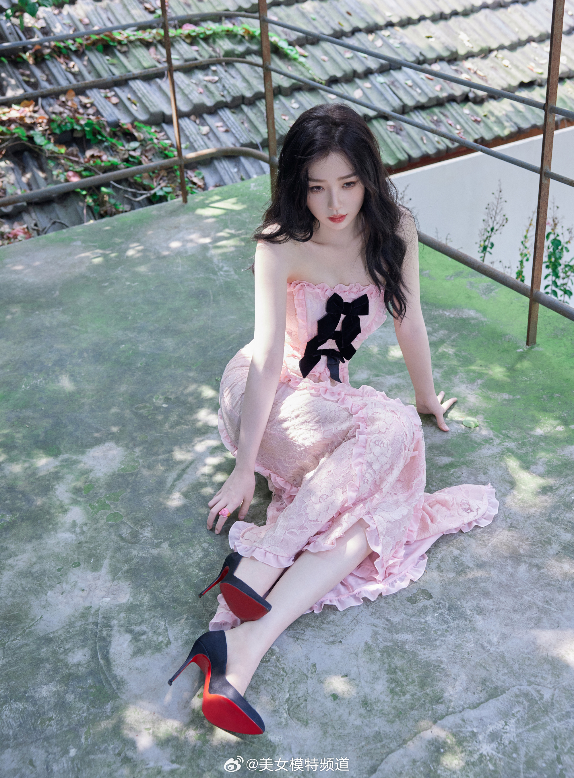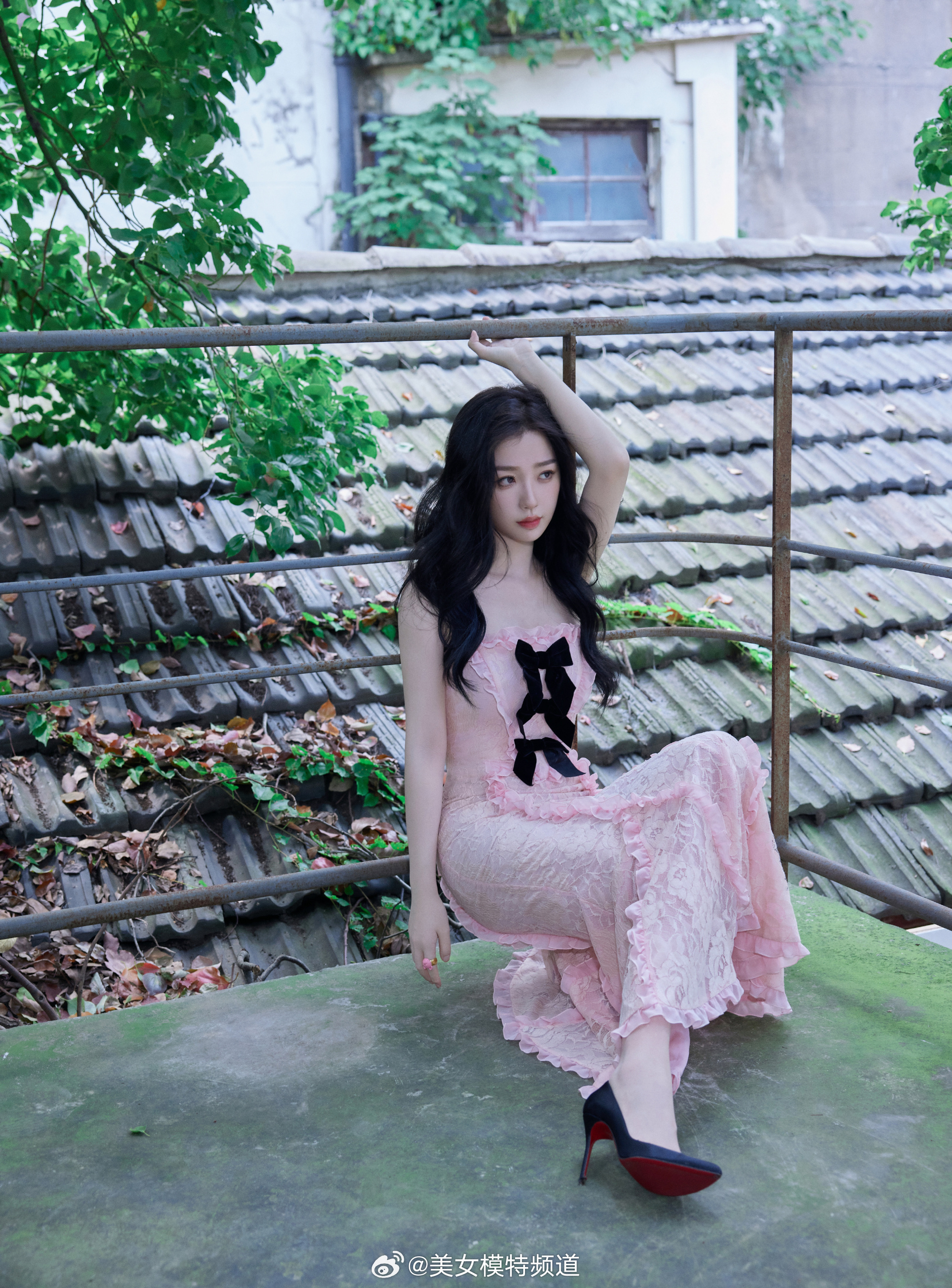 一袭长裙的御姐型美女,那气场简直绝了。就说穿搭,黑色丝绒包臀紧身长裙配黑色缎面吊
