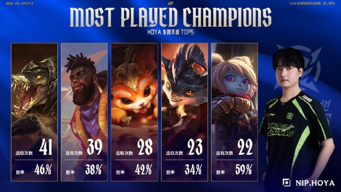 breathe与HOYALPL比赛中的生涯英雄选取次数TOP5如下;