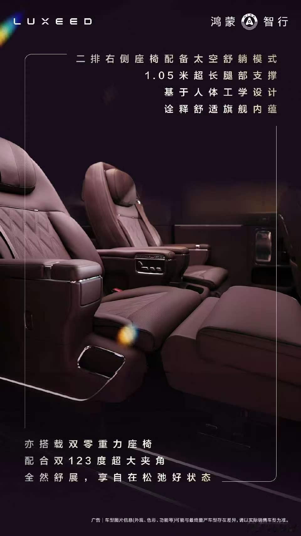 今天把智界V9的公开资料又过了一遍,能看出来这台车在舒适性上的发力方向很明确。3250mm轴距、2+2+3布局,二排双独立座椅支持45°迎宾、90°观景、180°对坐,靠背、腿托、脚托还能联动调节,场景覆盖做得比较细。今天新增披露的机械按摩、主动侧翼、太空舒躺模式,也进一步把这台MPV的舒适标签拉满了一些。再加上NAPPA真皮、半苯胺座椅、天然实木、后排吸顶屏、车载冰箱这些配置,智界V9至少在目前公开层面,已经把座舱质感和乘坐氛围搭起来了。先不急着吹满分,但如果你看重座椅体验和座舱舒适度,这台车确实值得继续关注。智界V9鸿蒙智行