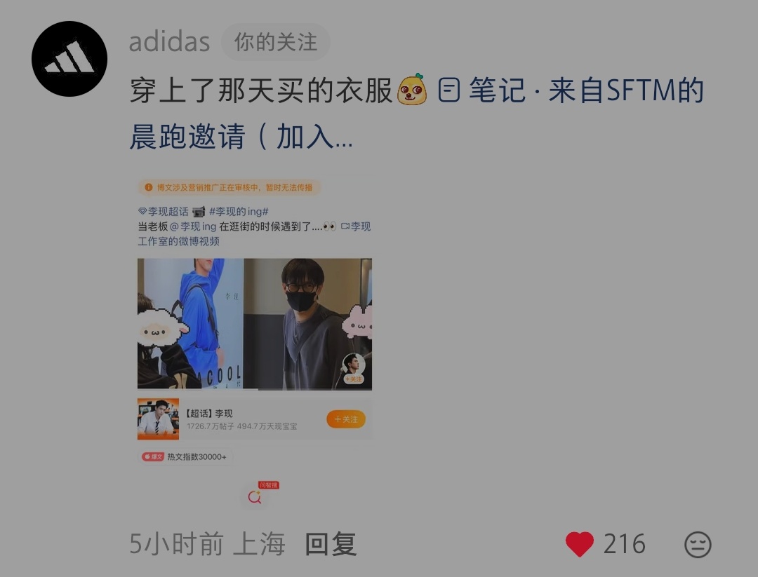 阿迪你带这个截图显得李现工作室有点心酸