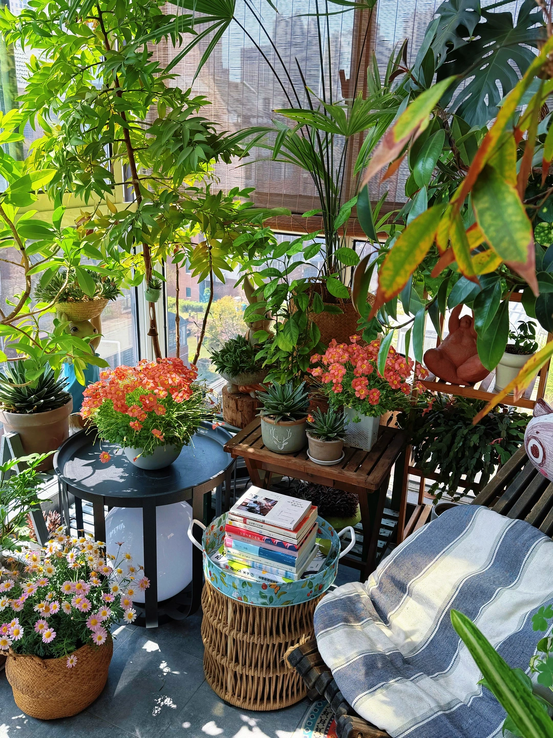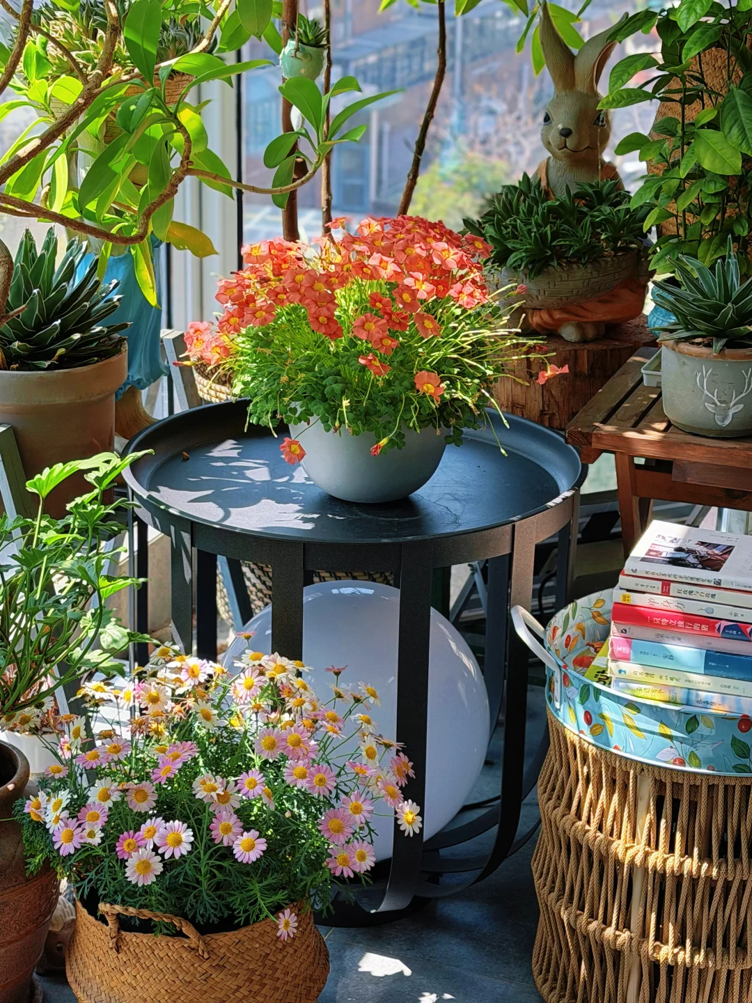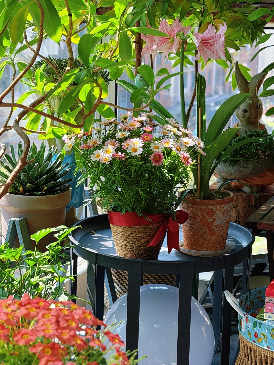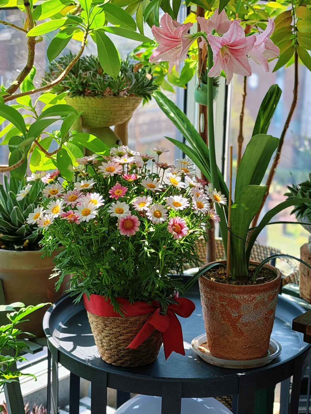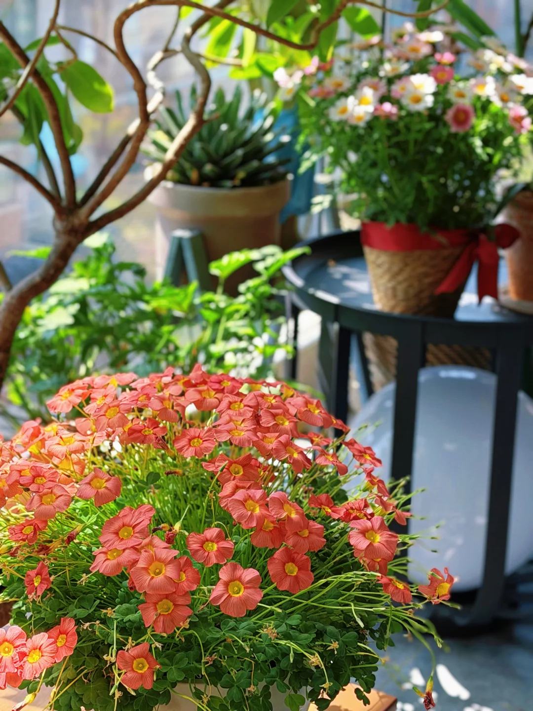 最近用玛格丽特、朱顶红、酢浆草作为点缀,高低错落,层次拉满,让整个阳台看上去更加漂亮。