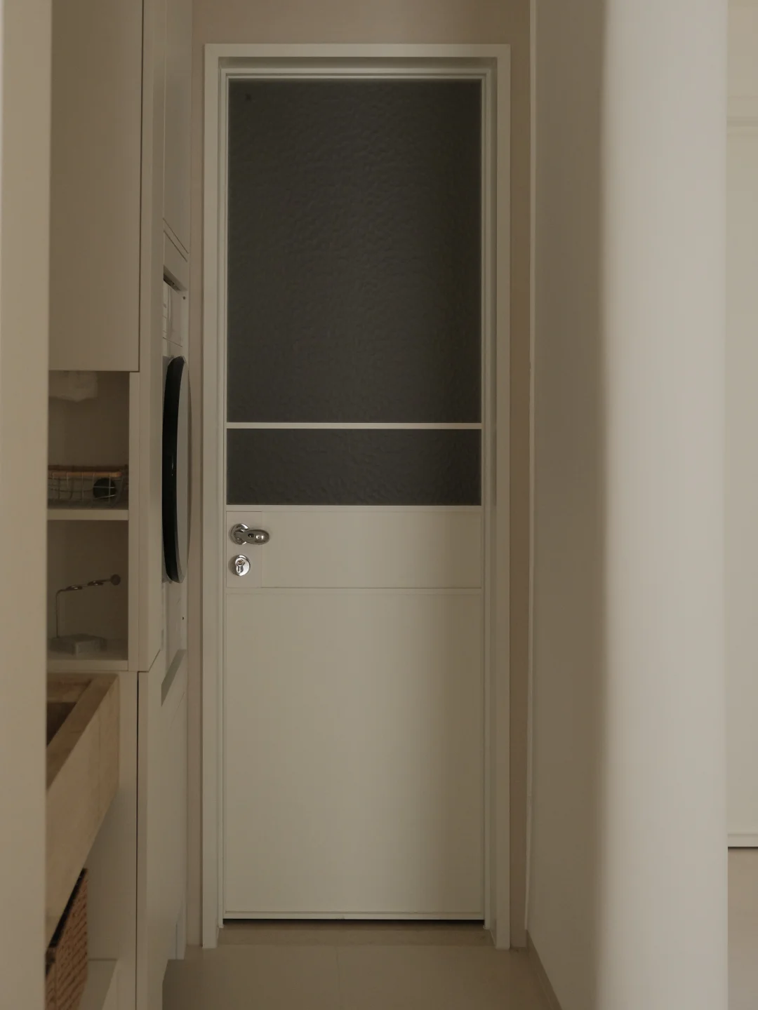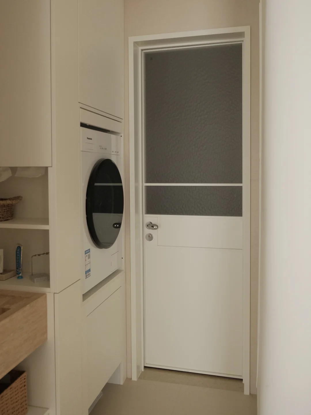 ▪️内区湿区:用奶白色长虹玻璃门做独立淋浴马桶区,水汽被完全隔绝,干区永远干爽不发霉
