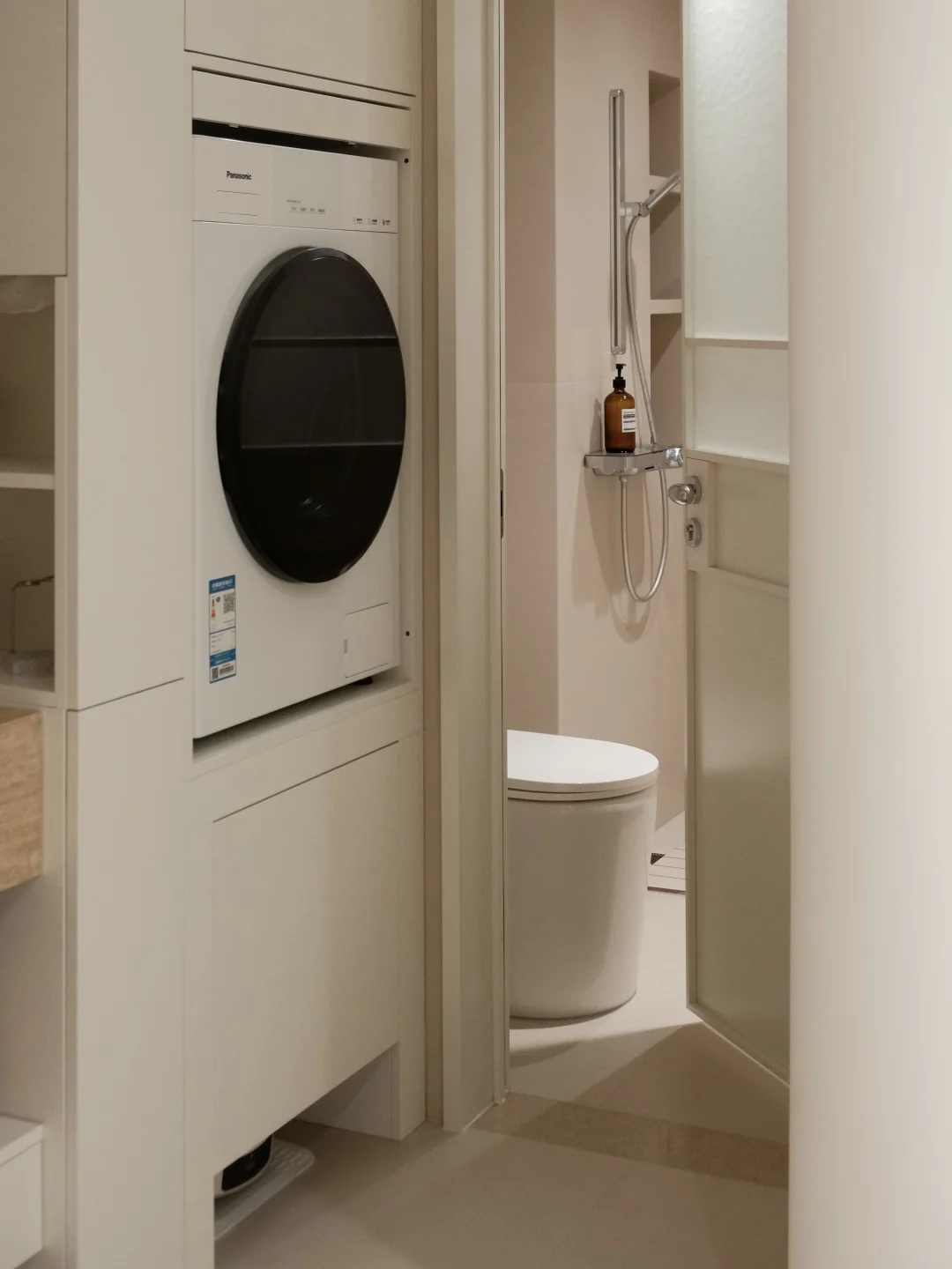 ▪️没有了玻璃隔断的压抑感,整个公卫和过道连在一起,奶白配色也不显得拥挤逼仄