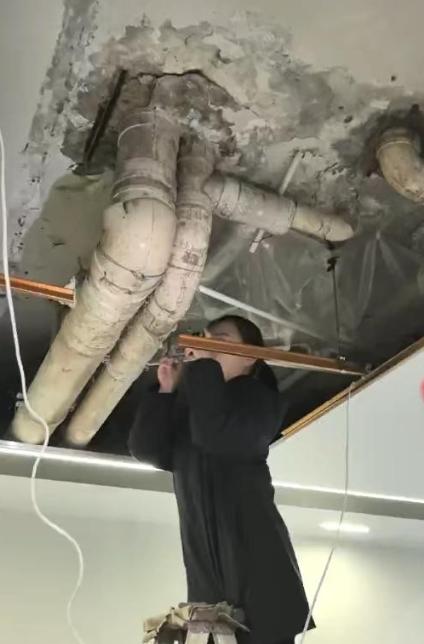 向女士赶紧找了装修师傅上门检查,师傅拆开天花板一看,才发现被藏起来的排污管道,不仅渗漏严重,还老化得厉害,显然不是短时间内出现的问题。