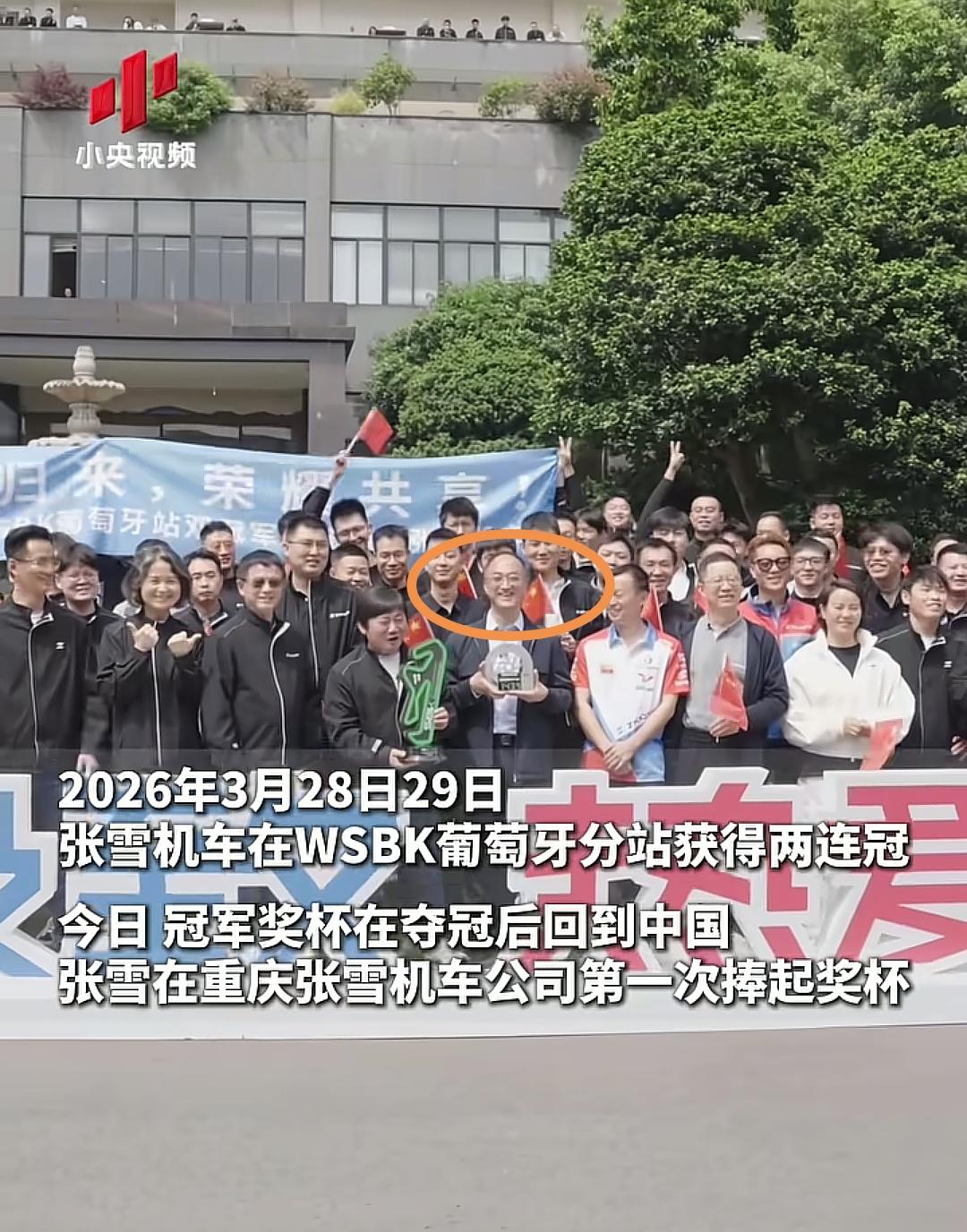 张雪机车夺冠奖杯回国,张雪机车公司举行了一场小型的欢庆仪式,值得注意的是,战略投资机构浙创投总经理也亲自从杭州赶到重庆参加迎接奖杯的活动,浙创投总经理更是站在C位与张雪一起。