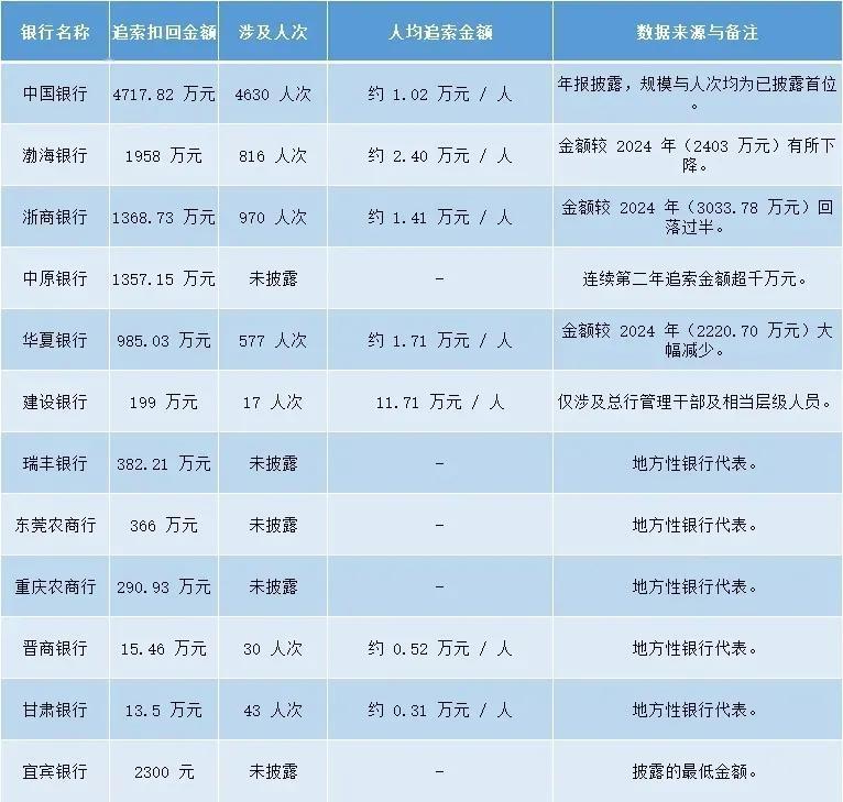 银行向员工“反向讨薪”,越来越常见了。以往都是员工向企业讨薪,可在金融领域,自2021年之后,银行反过来从员工手里追回已发出的薪资,开始变得常态化。一开始就3家银行公布具体数字,今年的年报当中,有13家银行公布了相关数字,其中数据给外界传达了不少信息。