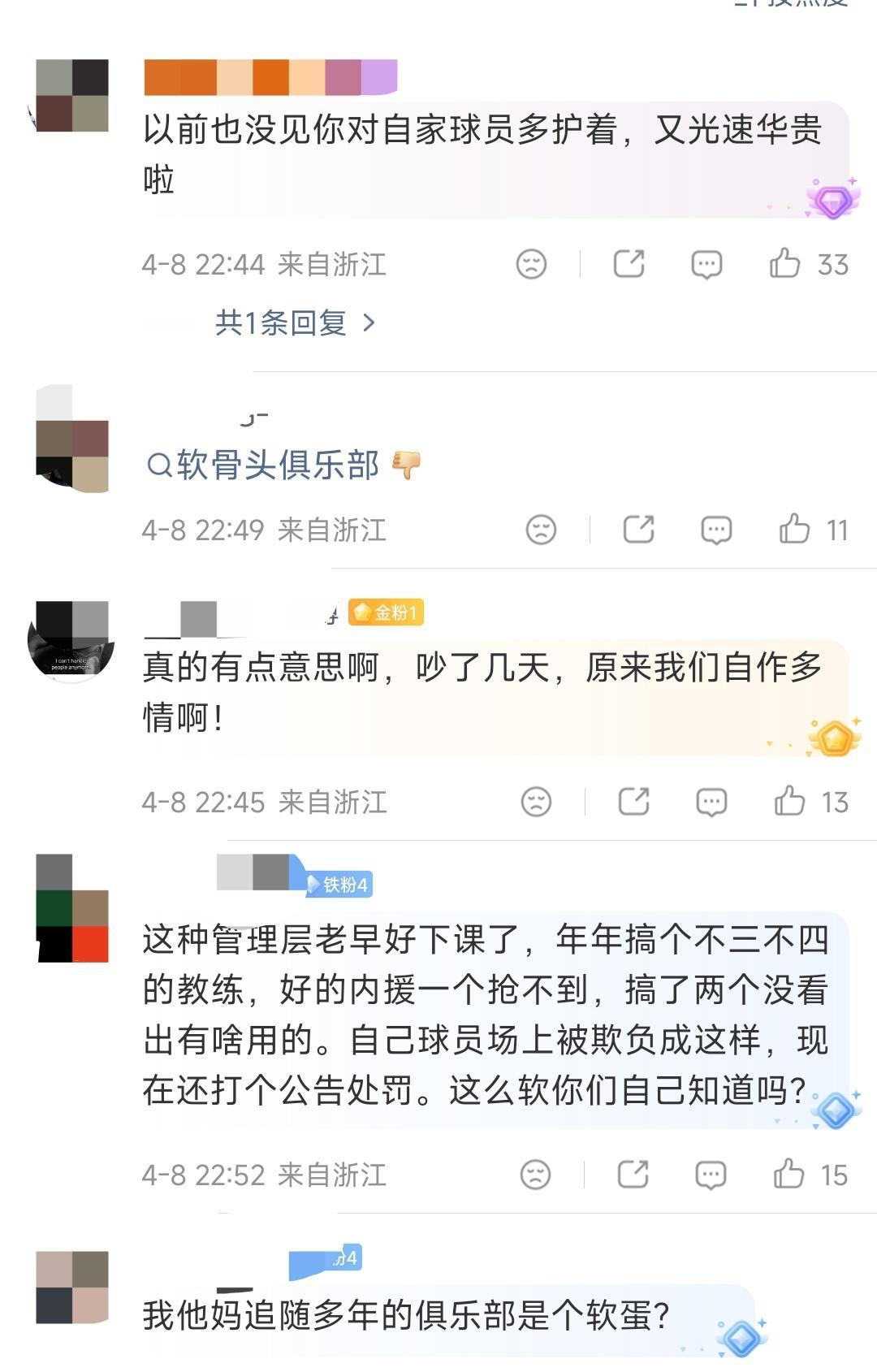 在接到中足联的处罚决定后,浙江队内部也是对米特里策进行了处罚,不过这个处罚就让球迷有些肉疼+不满。首先是6万欧的金额,许多球迷都觉得过多,即便以米特里策的年薪来说,也是笔不小的数额。其次,也不少球迷在球队社媒评论区表示,球队在这个时候应该更加保护球员,而不是处罚球员。
