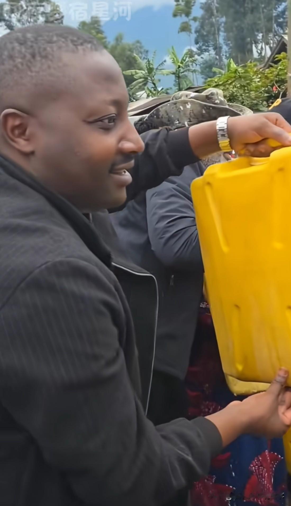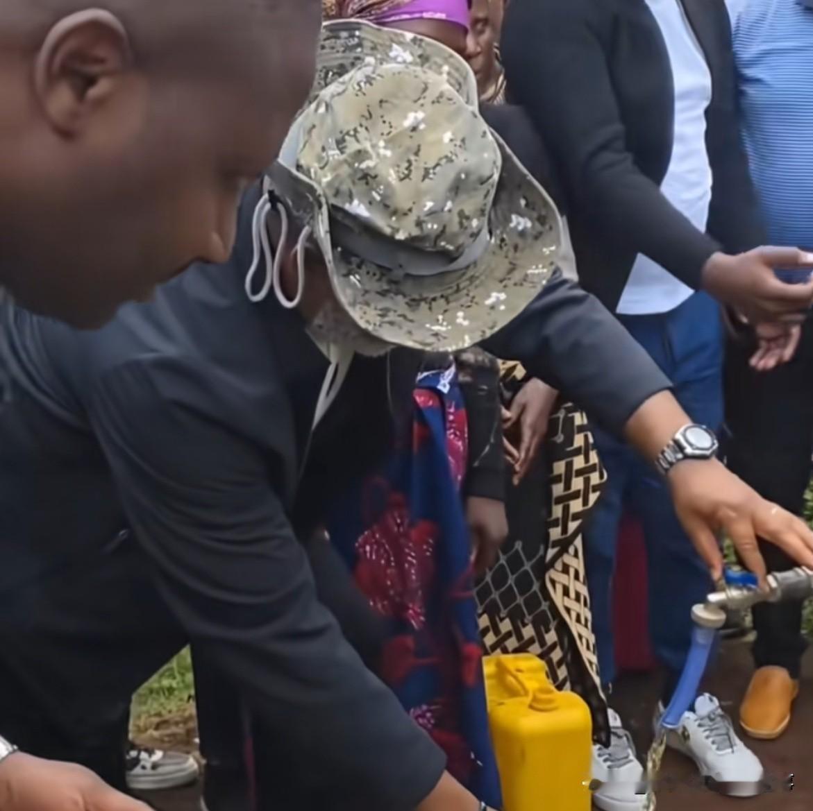 非洲老铁太想进步了,穿上了行政夹克,亲手给民众接水, 这作业抄得,服!