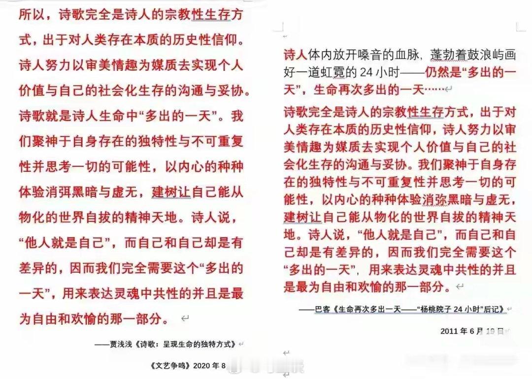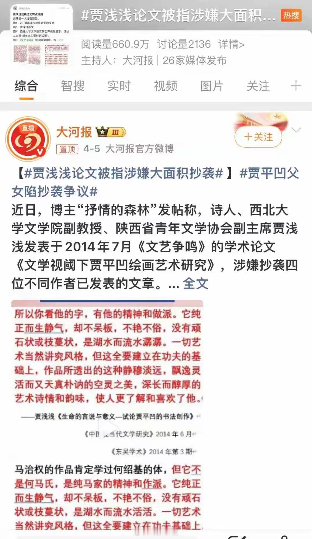 贾浅浅作为典型“文二代”,全无扎实学识:诗歌靠肢解伍尔夫散文拼凑,论文更是明目张胆大段抄袭,直接照搬父亲贾平凹文章、剽窃多位学者成果。