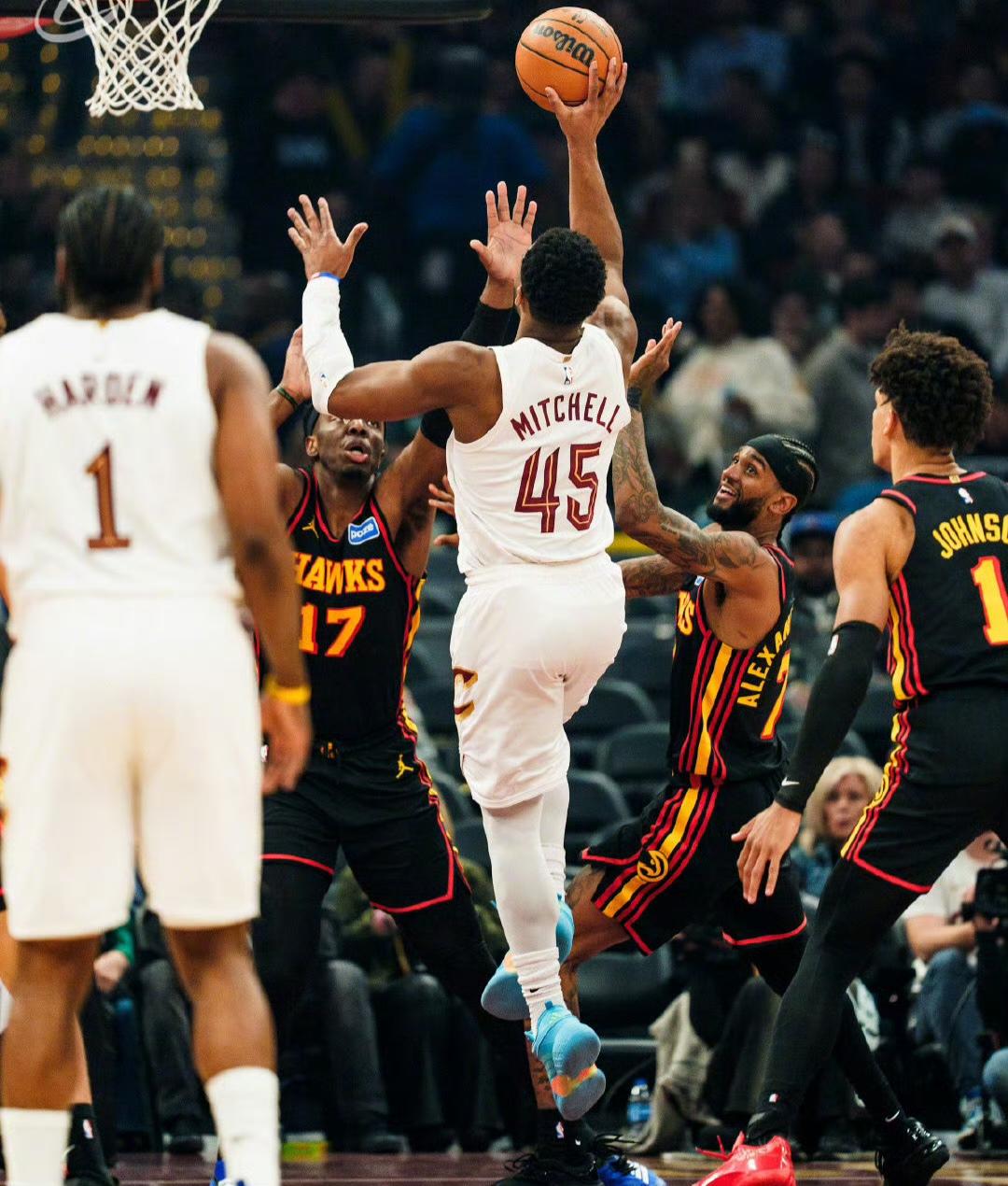 二、米切尔是功臣,第三节引领骑士的反扑高潮,全场19中12交出31分7篮板4助攻;
