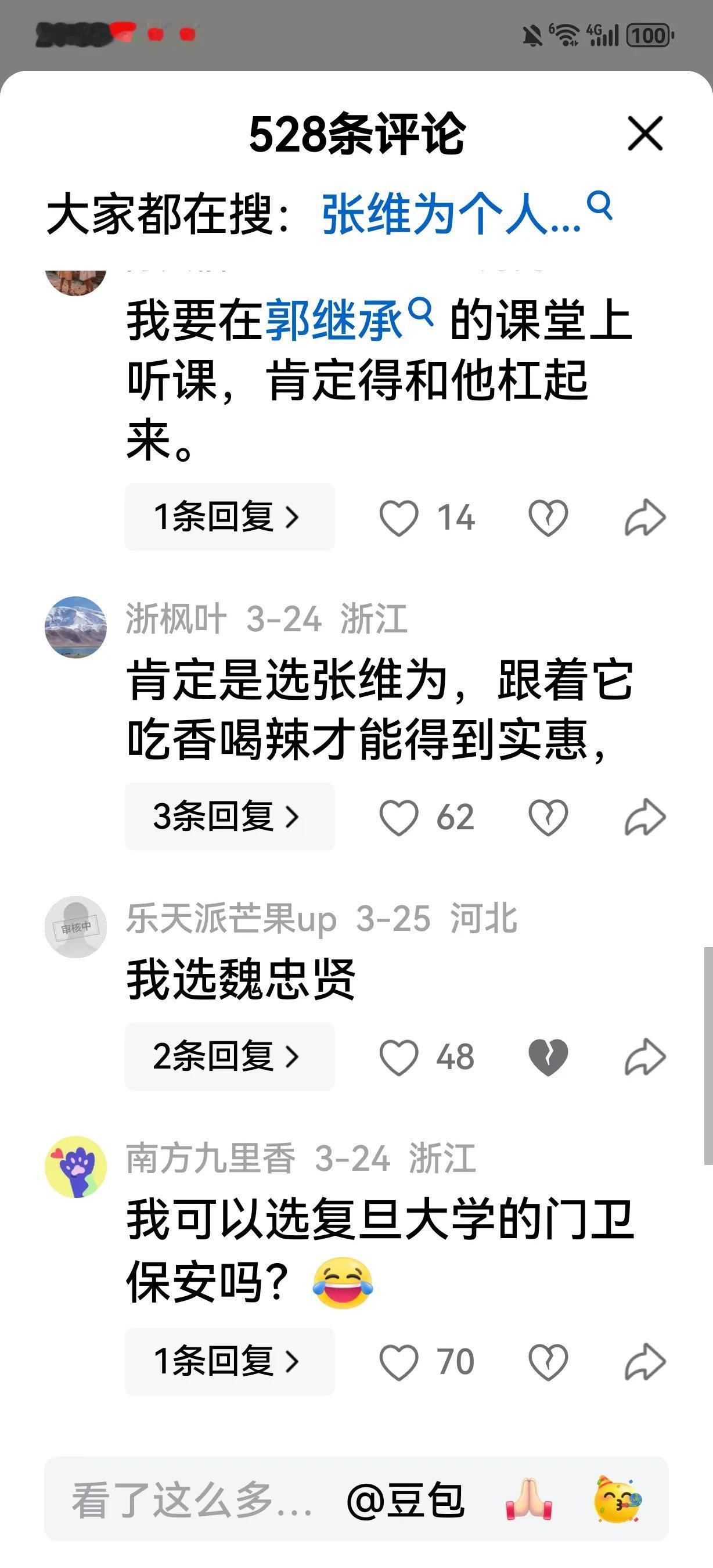 【我选张维为】 如果强制在几位导师里选一位听课,我还是选张维为,因为他讲起来很生