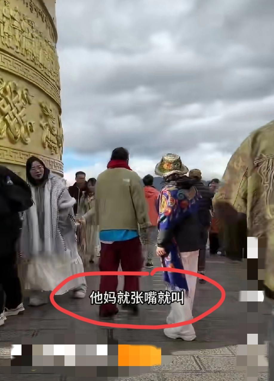 视频显示:双方吵架的地方就在这个大的转经筒边上,在转经筒跟前这样大声吵吵,戾气这么重,不是白转了吗?