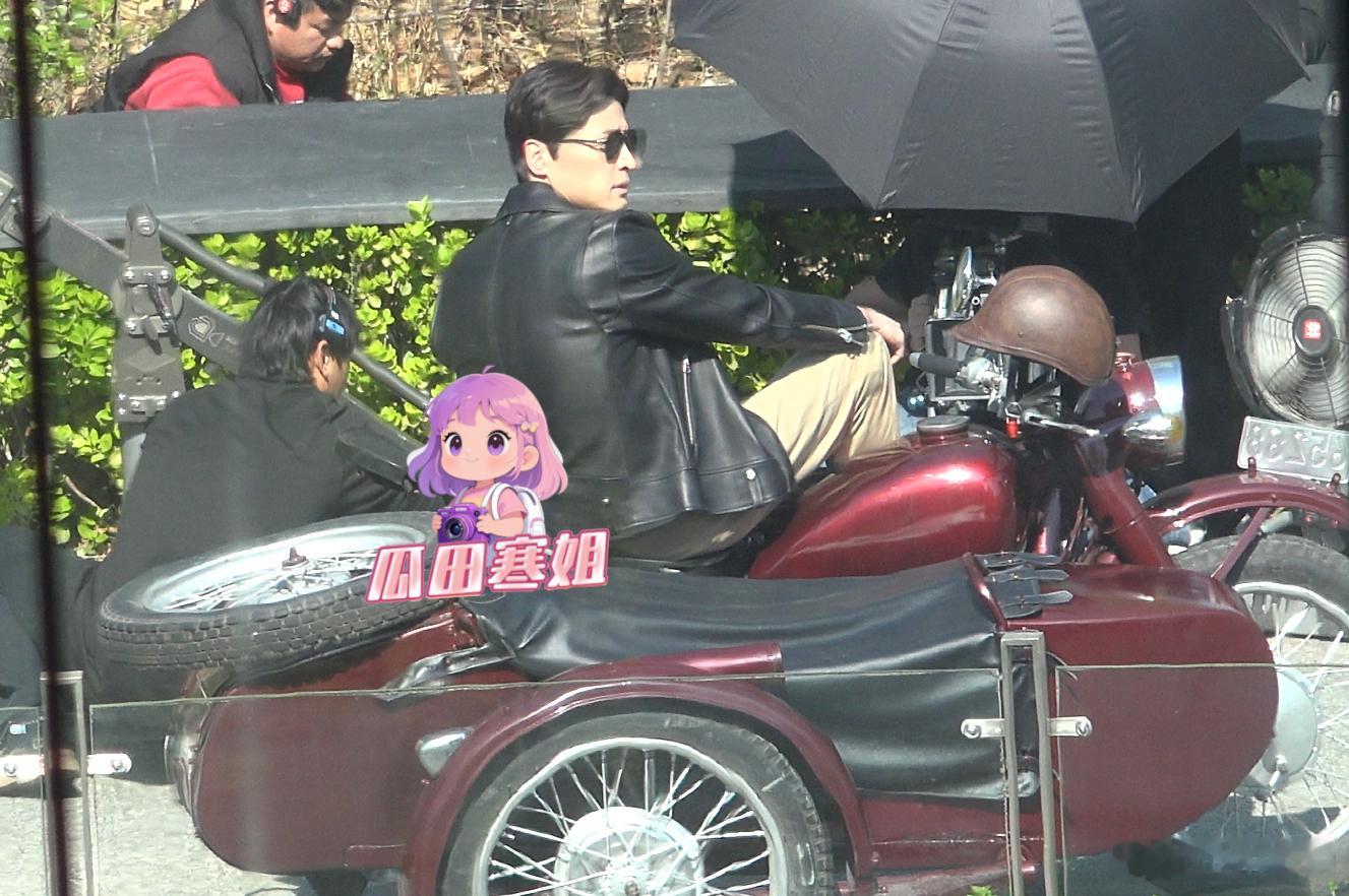 胡歌老了也是法拉利 胡歌43岁了还这么帅!戴墨镜穿夹克坐在复古摩托车上候场,造型