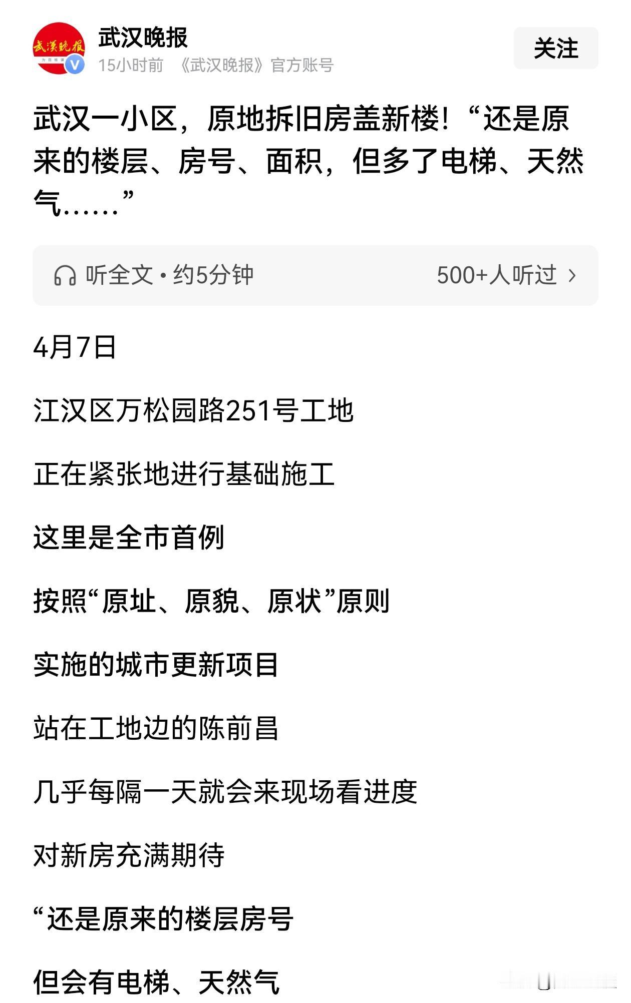 武汉首个原拆原建项目开工,不增加楼层面积,增设电梯。如果影响周边住户采光,原来周边居民也可以反对!