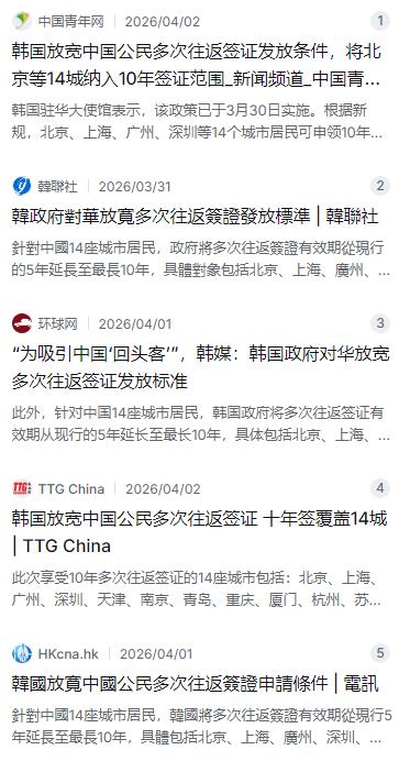 去韩国旅游这事儿,最近又有了新变化。从2026年3月30日起,韩国正式实施了针对中国公民的签证新政,把北京、上海、广州、深圳等14个城市的居民纳入了十年多次往返签证的适用范围。说韩国这次“下了血本”,一点也不夸张。