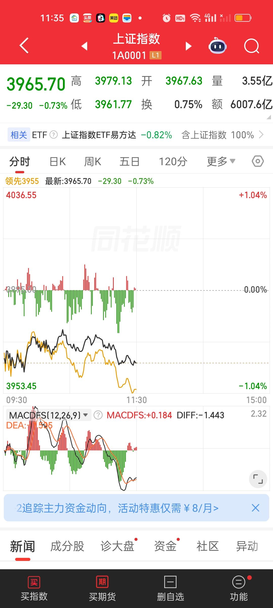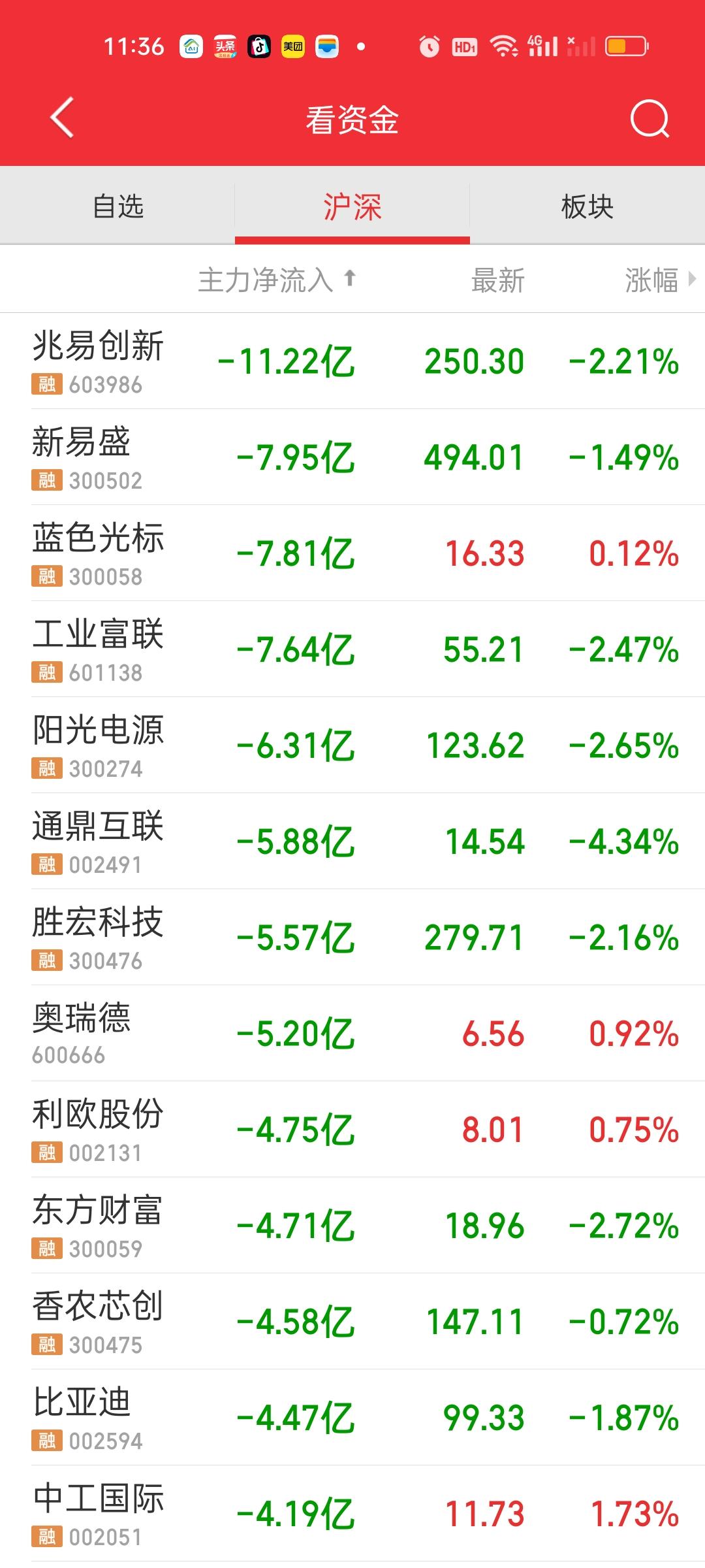 但今天量能跟不上了,大盘资金不再净流入了,上涨家数急速减少,下跌家数超过了4400家,完全反过来了。今天一个上午就缩量了1174亿,大盘资金净流出526.52亿,昨天净流入的资金今天一个上午就跑了一多半。这对昨天追高买进的人太不友好了。买进来就被套。