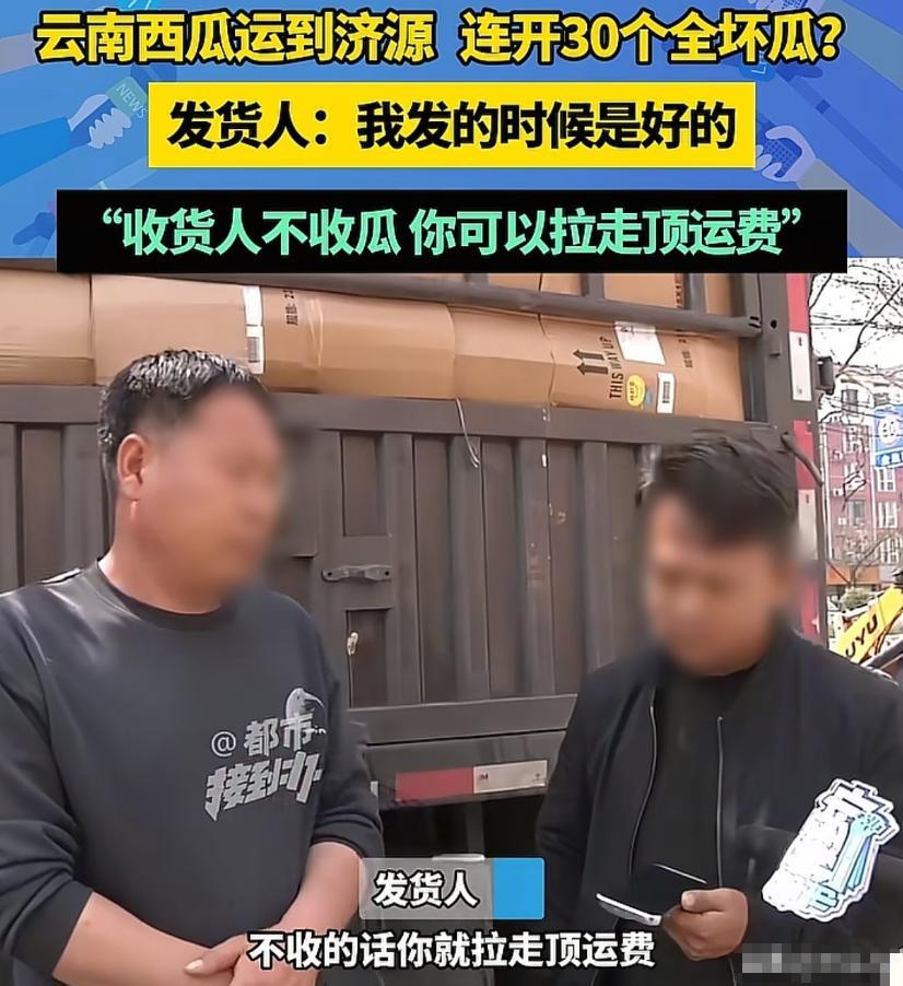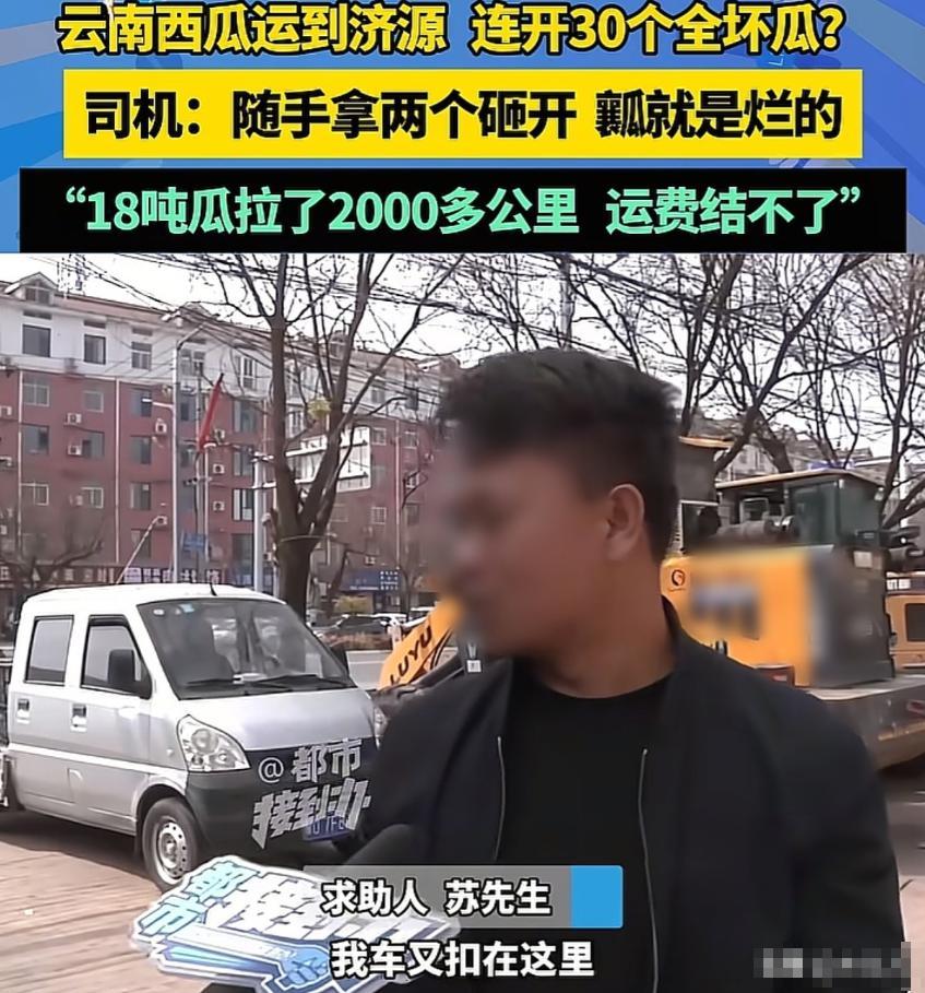 男子从云南运了18吨西瓜到济源,可收货方一检查,连开了30个瓜,外面都是好好的,