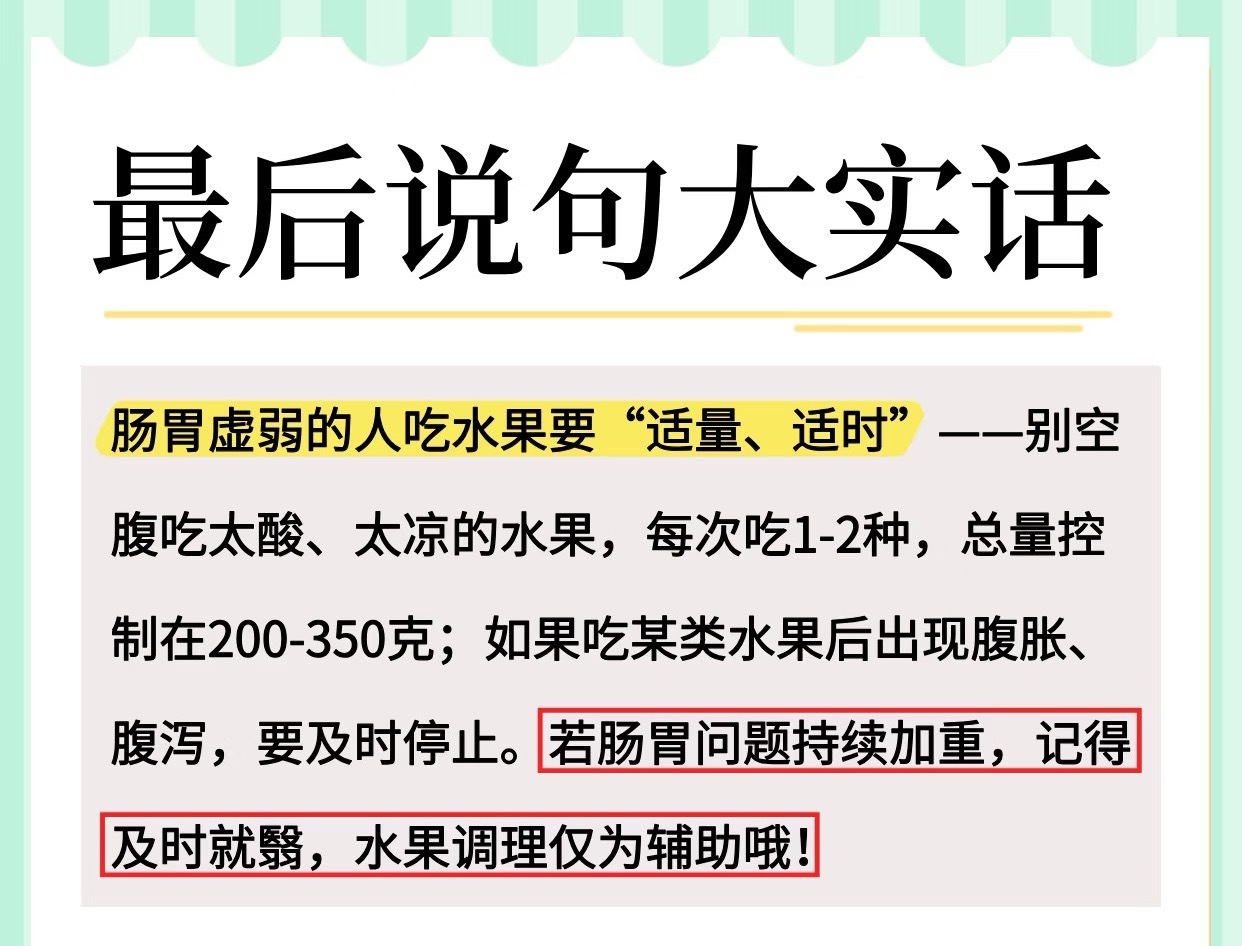 肠胃不好的人,核心原则是:少吃生冷、过酸、高糖、易胀气的水果,优先选温和、易消化、低刺激的。