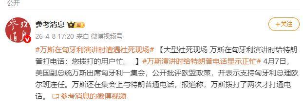 2026年4月7日,美国副总统万斯出人意料地现身匈牙利首都布达佩斯,参加一场支持匈牙利总理欧尔班的集会,并在现场直接拨通了美国总统特朗普的电话,这一罕见举动瞬间引爆现场气氛,也引发国际舆论广泛关注。