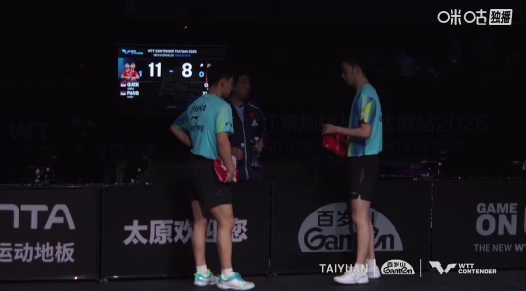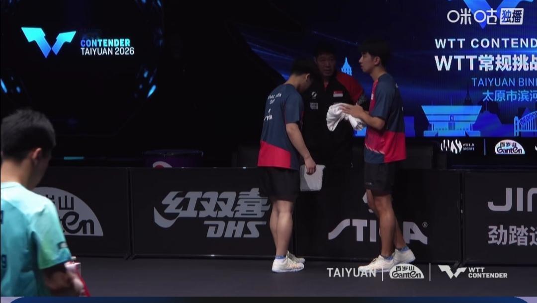 向鹏/陈垣宇鏖战五局,3:2(8-11;11-3;11-9;7-11;13-11)决胜局两分险胜新加坡郭勇/冯耀恩。