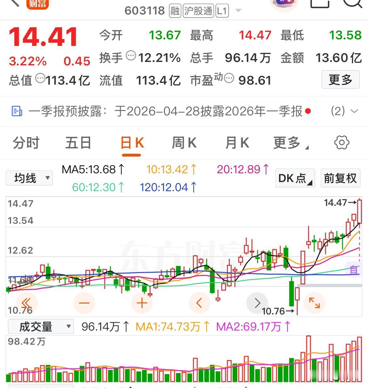 技术面上连续三天大涨,就看14.5能不能突破,否则还是要回调。