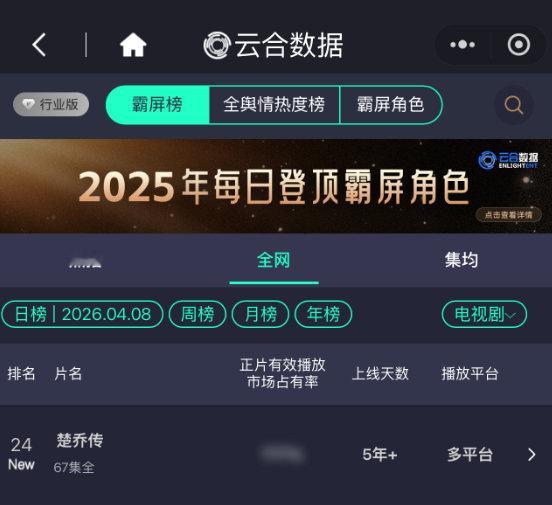 也就是说今年第一季度差不多比去年多了1亿云合播放量!