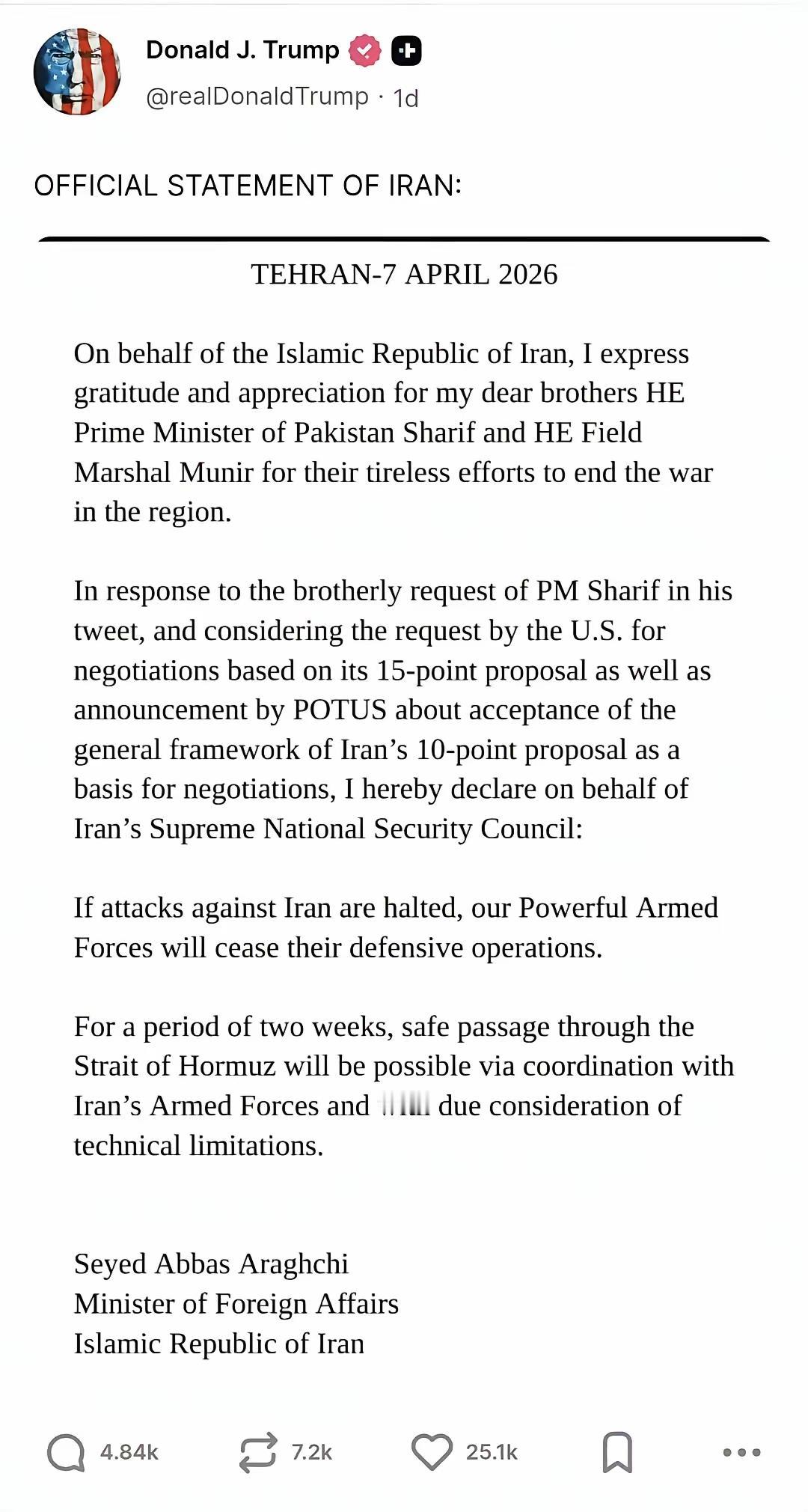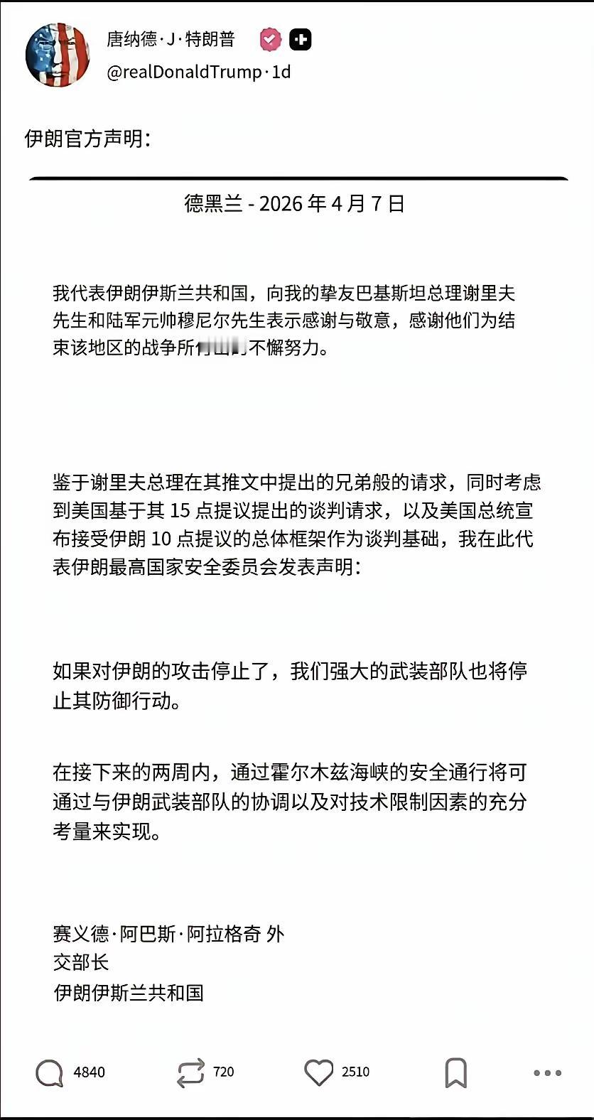 特朗普关于否认存在“伊朗10条”是“假新闻”的独白:“我只认我认的事,而不是我说过、承诺和做过的事。这太糟糕了,的确太糟糕了,但我从来如此,这太好玩了。就像昨天(达成停火协议)的事,它和今天有什么关系?互联网记忆?跟我有什么关系?关我什么事?