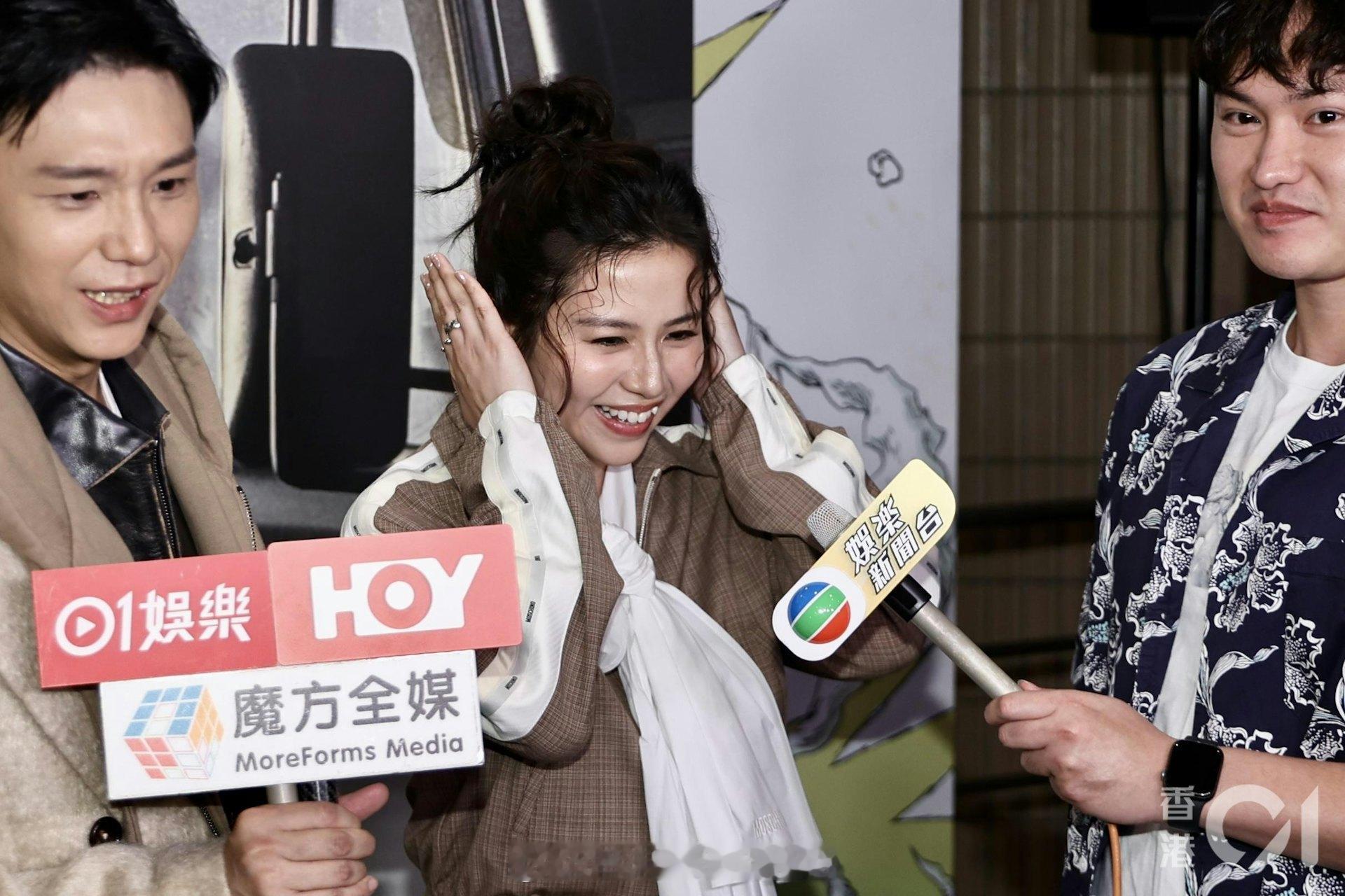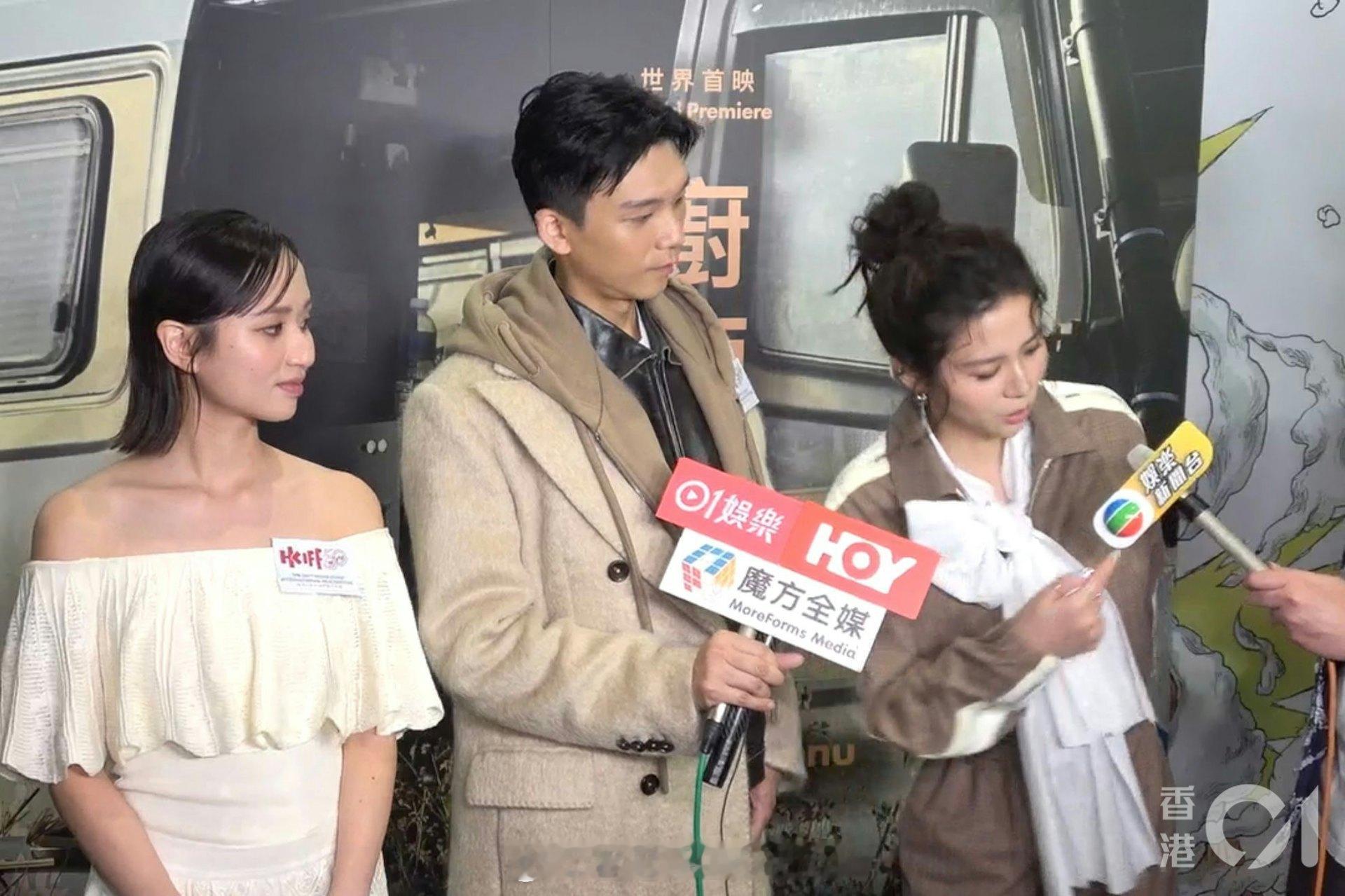 望向TVB咪牌笑问:这么敏感的话题能说吗?被问到张振朗是否因不答应公司要求而被减少工作,Renci望向TVB咪牌笑说:“这个真的不知道,这么敏感的话题能说吗?”之后以要入场看首映为由,礼貌表示:“我真的不清楚,我要入场了,不知道呀!”身旁的卢镇业(小野)也帮忙解围,笑说:“她是真的不知道,别再逼她啦。”