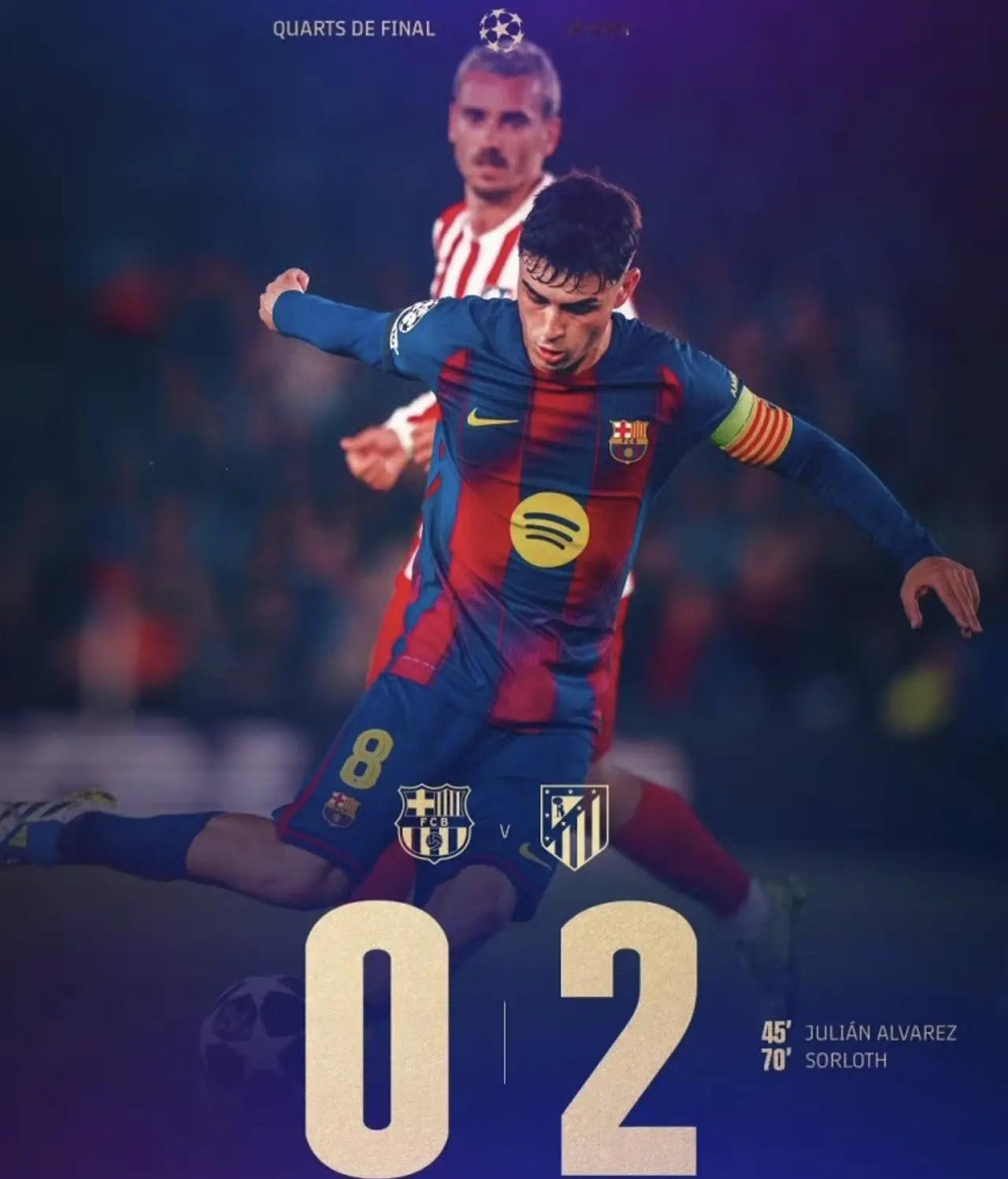 欧冠1/4决赛巴萨0-2马竞巴黎2-0利物浦北京时间4月9日,2025-2026赛季欧冠四分之一决赛首回合迎来收官战!两场重磅对决震撼上演:西甲内战巴萨主场0-2完败马竞,卫冕冠军巴黎圣日耳曼主场2-0零封利物浦,首回合战罢,3支球队主场输球,多组对决悬念基本失去悬念,外界普遍预测巴萨、皇马两大豪门将止步八强,欧冠4强格局提前露出清晰轮廓!