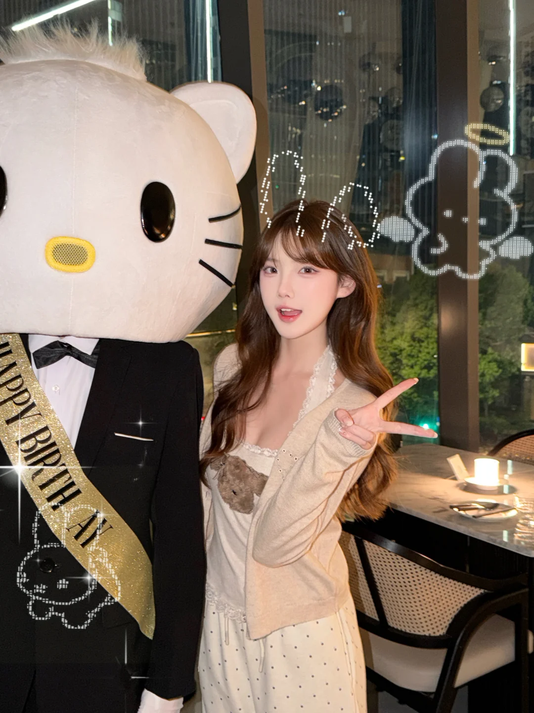 谁懂啊!在氛围感拉满的江景餐厅过生日,还被Hello Kitty人偶送生日惊喜,直接把浪漫值拉满了🥳