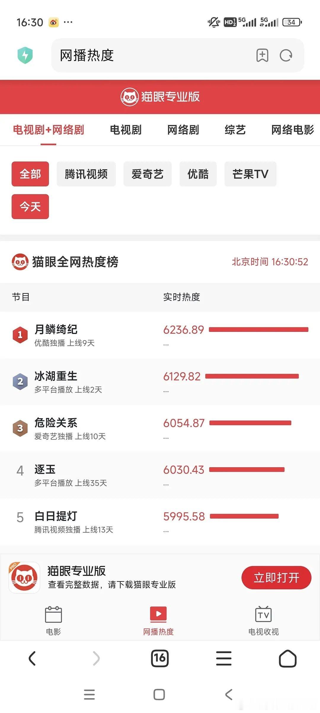 李昀锐冰湖重生首日云合4.7%,猫眼热度第二